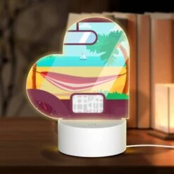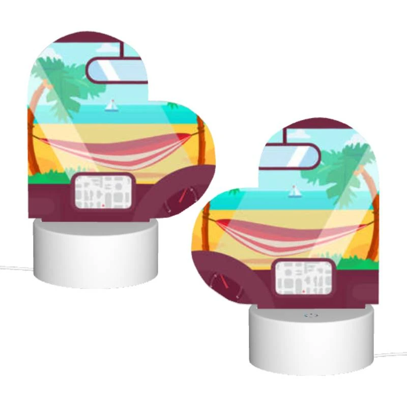 Love Acrylic Night Light, A Car’s View Of A Beach With A Hammock And A Boat In The Water.