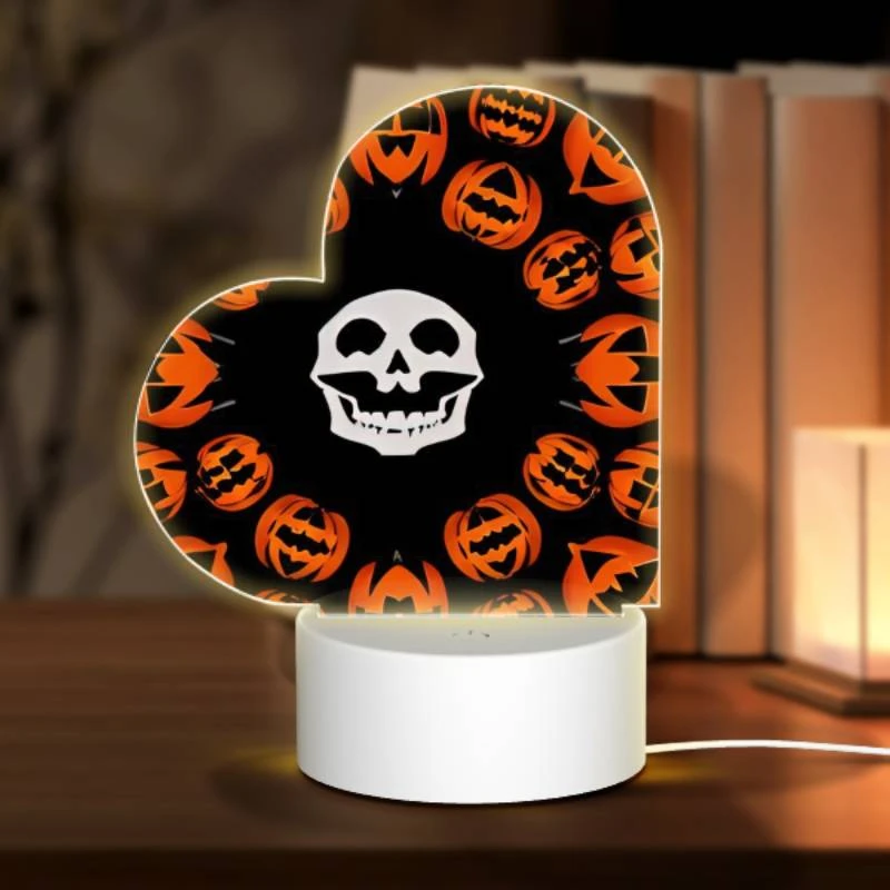 Love Acrylic Night Light, A Circle Of Pumpkins With A Skull In The Center.