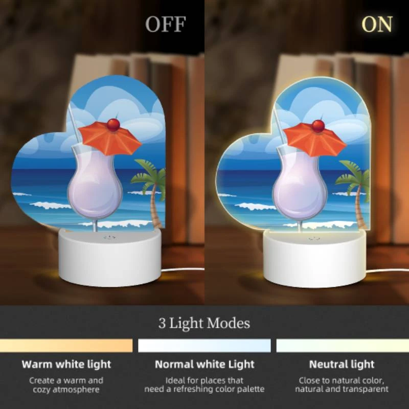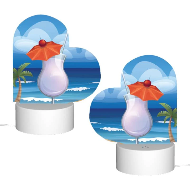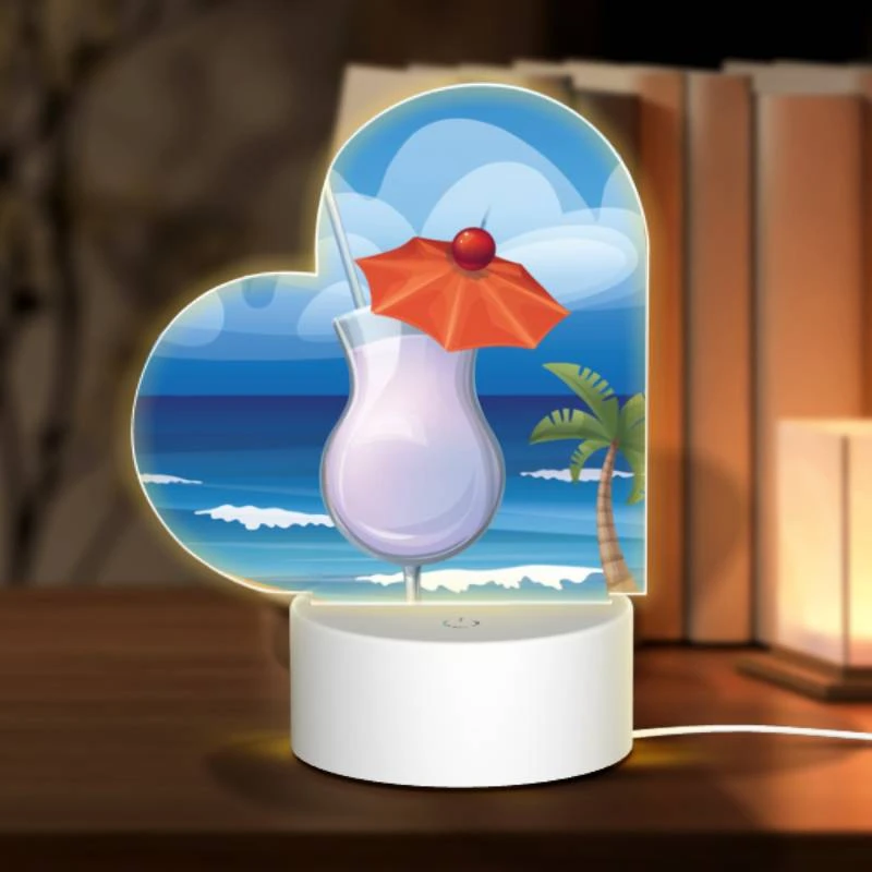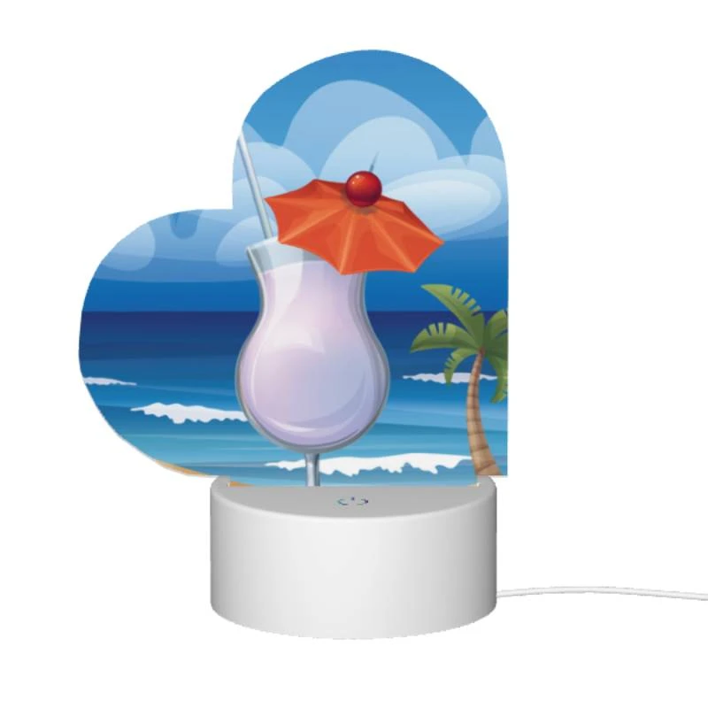 Love Acrylic Night Light, A Cocktail With A Cherry On Top Is Sitting On A Beach.
