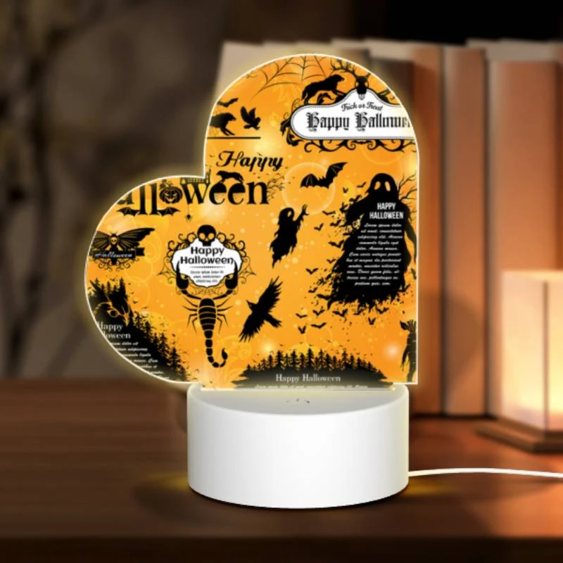 Love Acrylic Night Light, A Collection Of Halloween Images And Phrases.