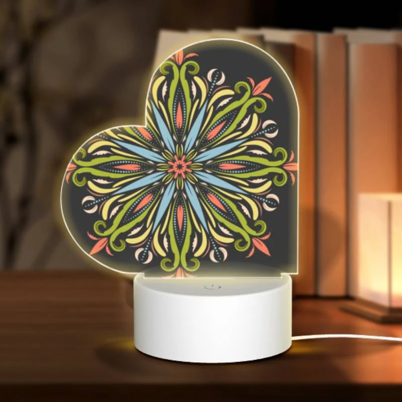Love Acrylic Night Light, A Colorful Flower With Green