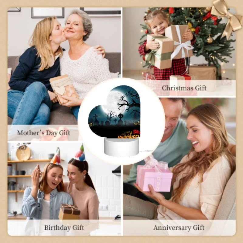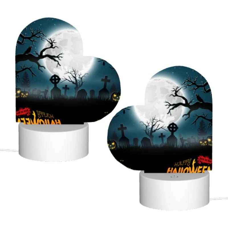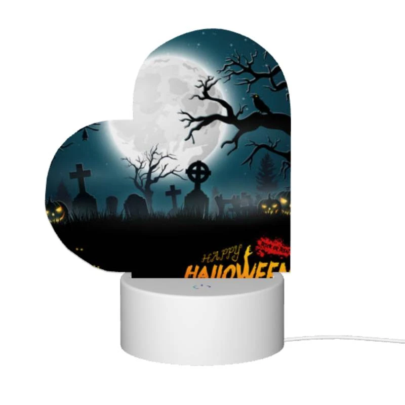 Love Acrylic Night Light, A Halloween Poster With A Full Moon And A Bunch Of Bats.
