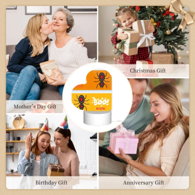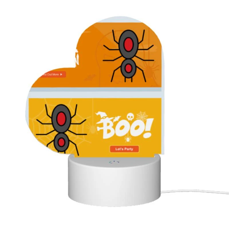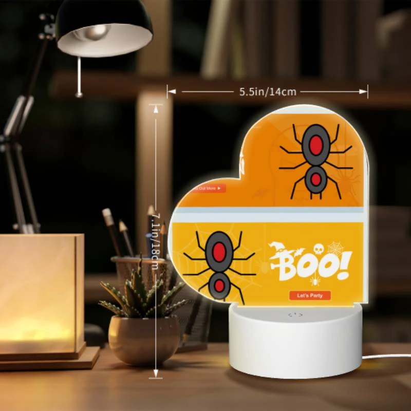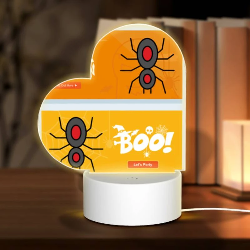 Love Acrylic Night Light, A Halloween Themed Advertisement With A Spider And A Skeleton.