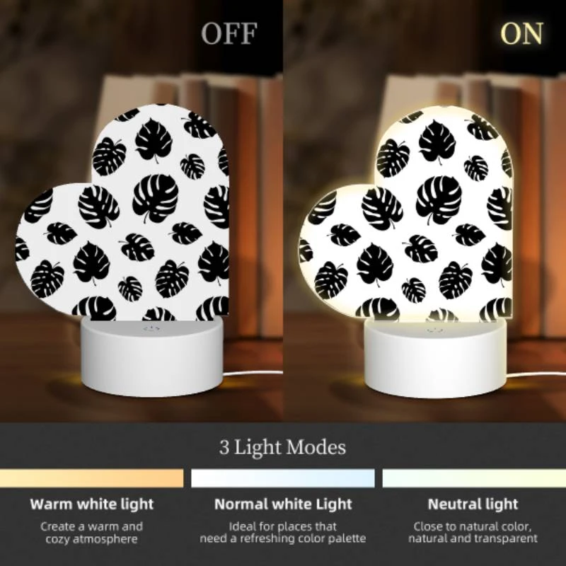 [Product Performance] The night light is composed of an acrylic light board and a plastic base. The night light has 3 light options (white light, warm light, warm white light). Touch to switch the light mode, which is soft and not dazzling, harmless to the eyes, and accompanies you into sweet dreams every night, creating a comfortable sleeping environment.