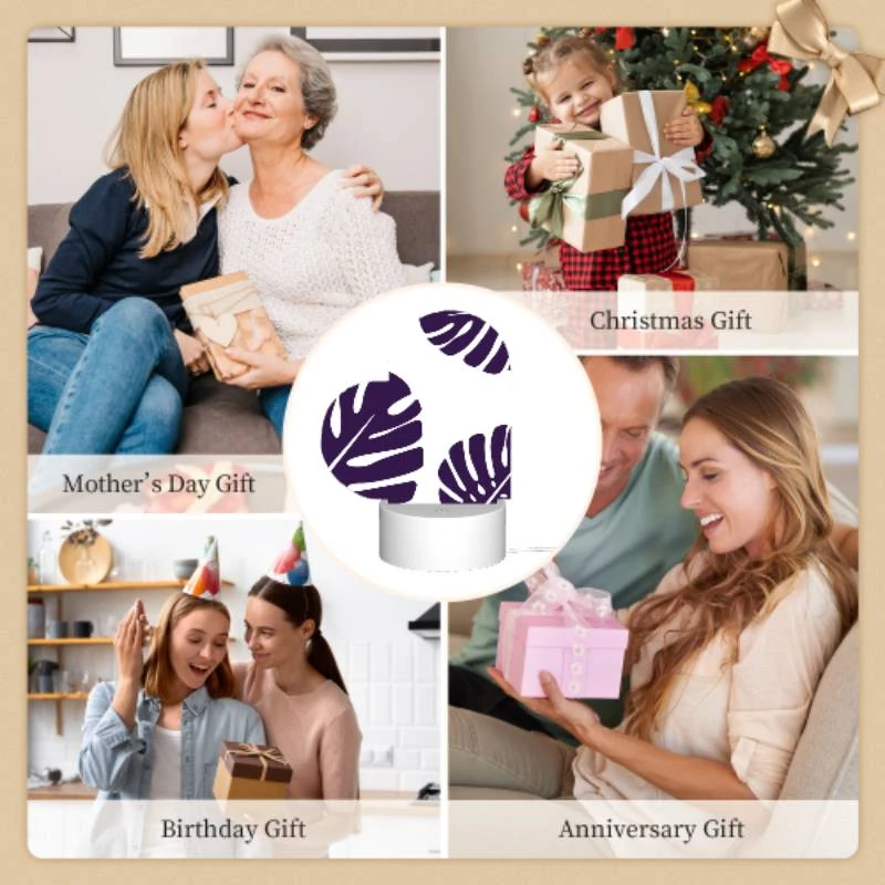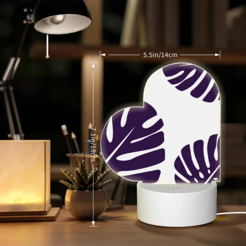 Love Acrylic Night Light, A Pattern Of Leaves On A White Background.