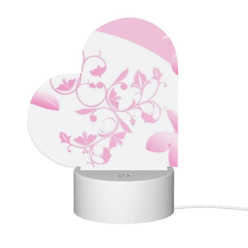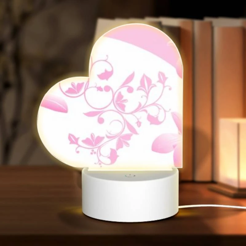 Love Acrylic Night Light, A Pink Flower With A Green Leaf.