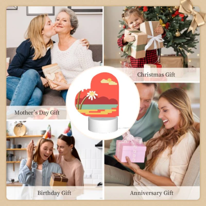 [Product Performance] The night light is composed of an acrylic light board and a plastic base. The night light has 3 light options (white light, warm light, warm white light). Touch to switch the light mode, which is soft and not dazzling, harmless to the eyes, and accompanies you into sweet dreams every night, creating a comfortable sleeping environment.