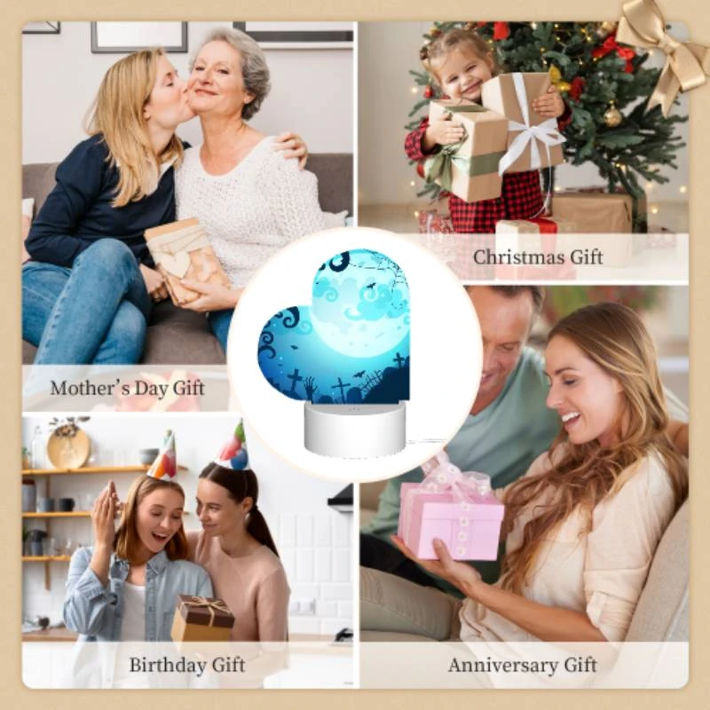 Love Acrylic Night Light, A Spooky Scene With A Full Moon And A Bunch Of Bats Flying Around.
