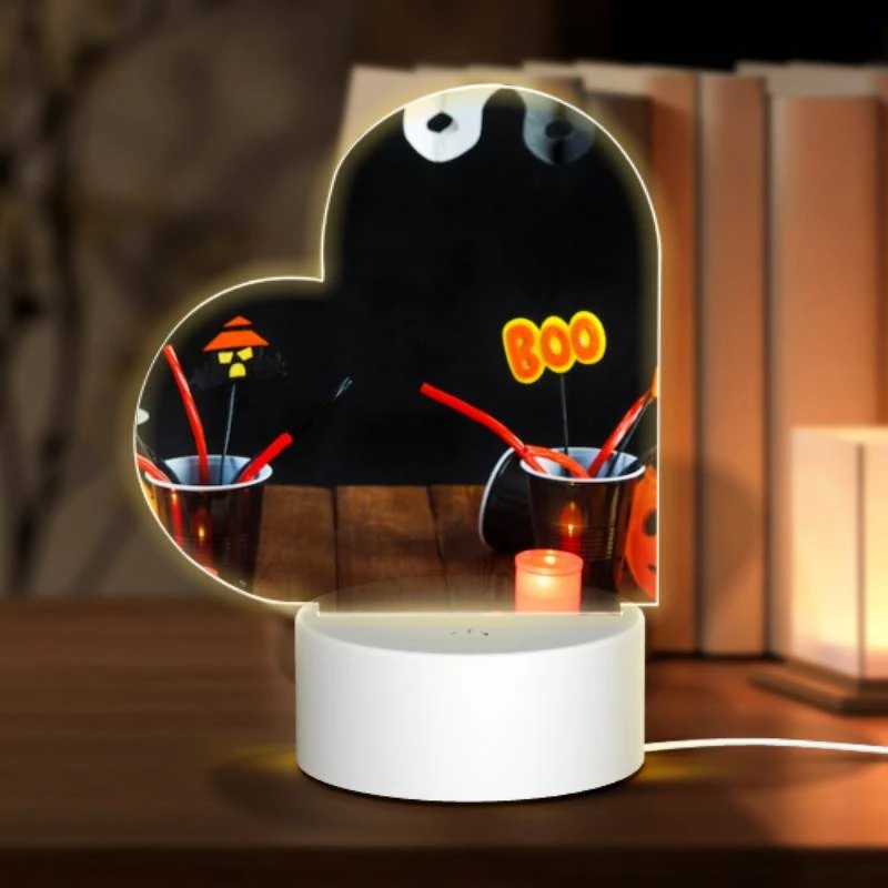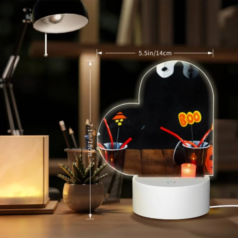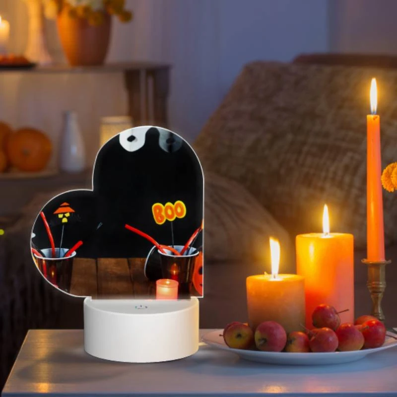 Love Acrylic Night Light, A Table With Two Cups Of Candy And A Lit Candle.