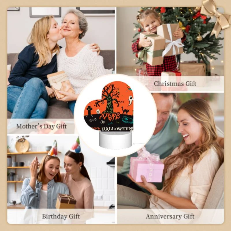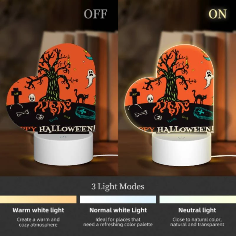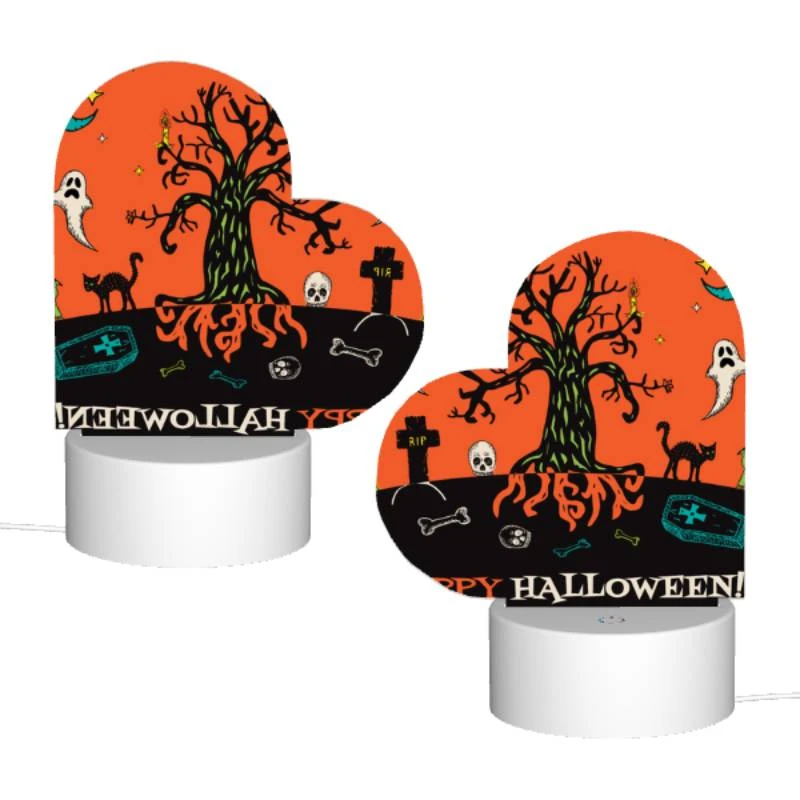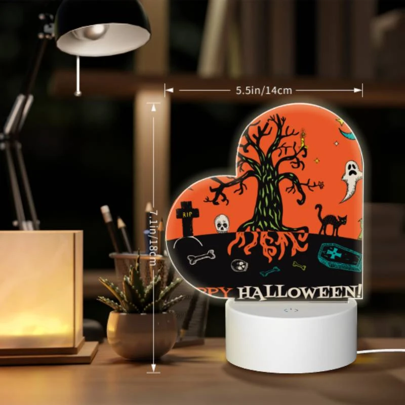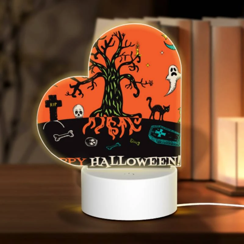 Love Acrylic Night Light, A Tree With A Skull On It And A Bone In Front Of It.