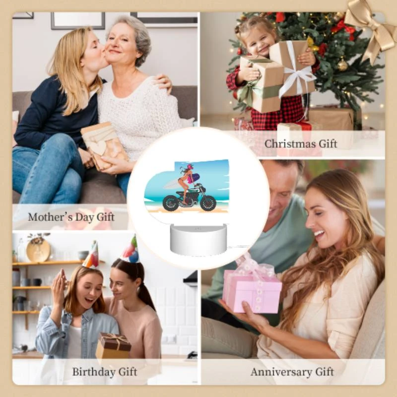 Be the first to review “Love Acrylic Night Light, A Woman Is Sitting On A Motorcycle With A Surfboard On The Back.” Cancel reply