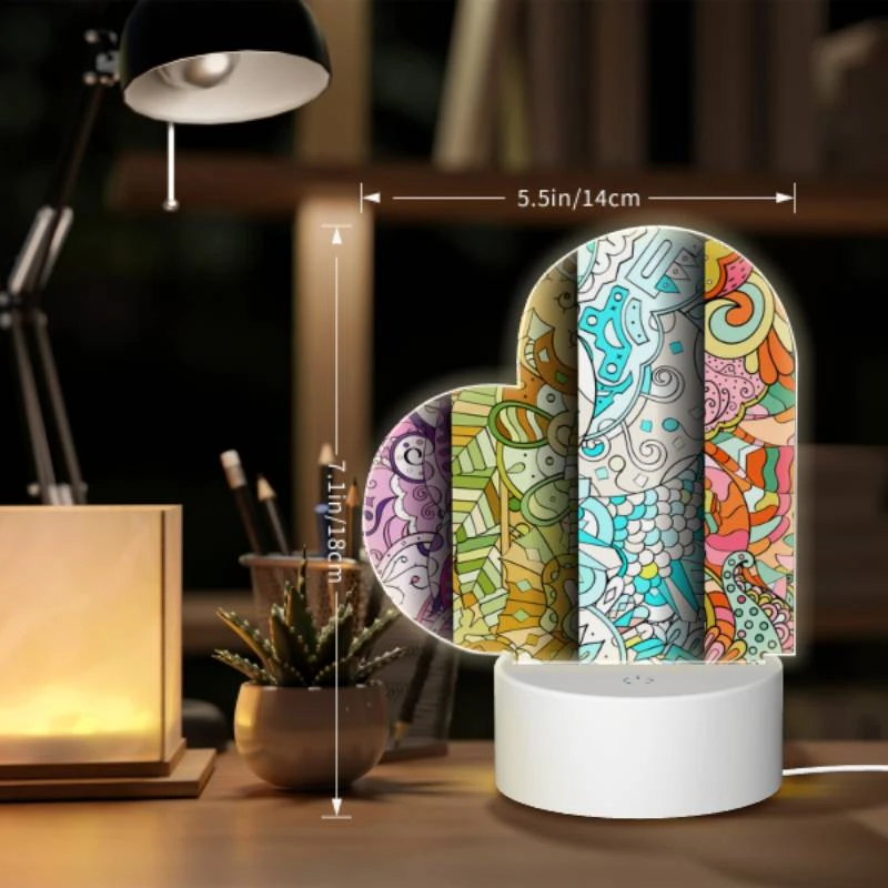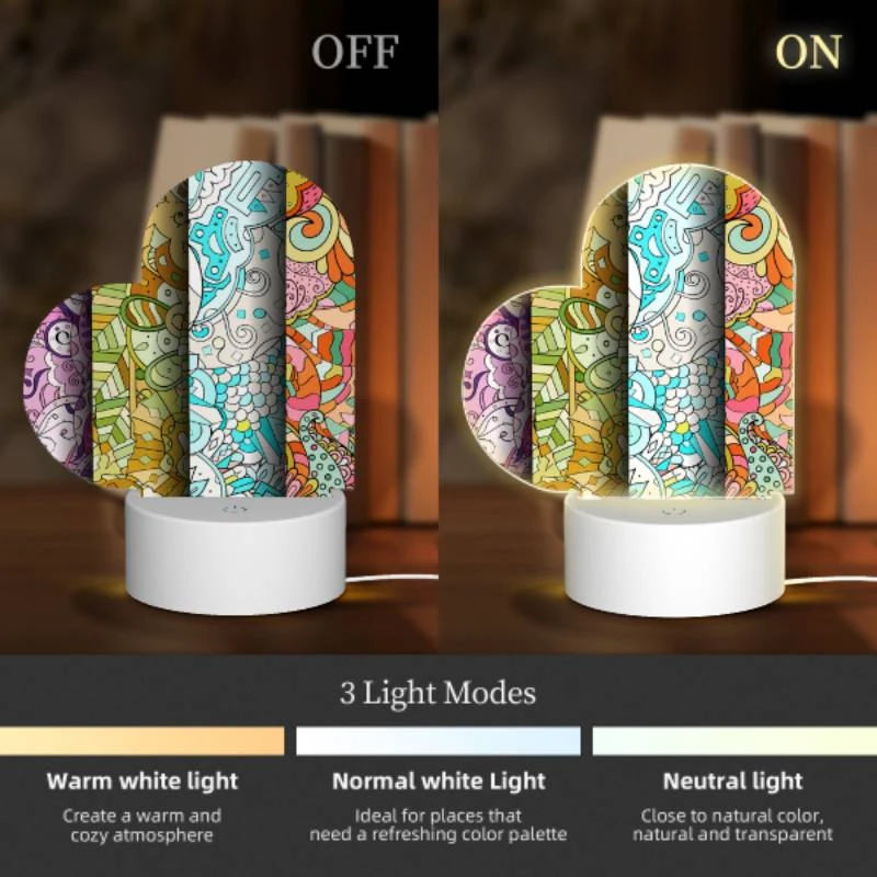 Love Acrylic Night Light, Three Colorful Designs Are Displayed On A Wall.