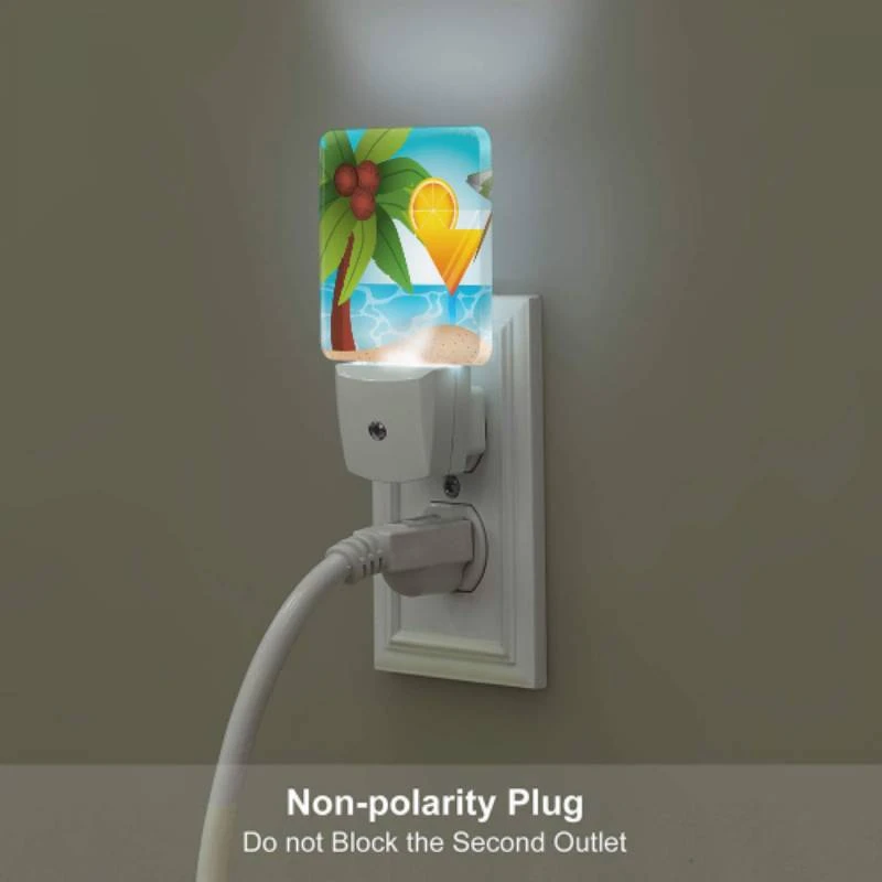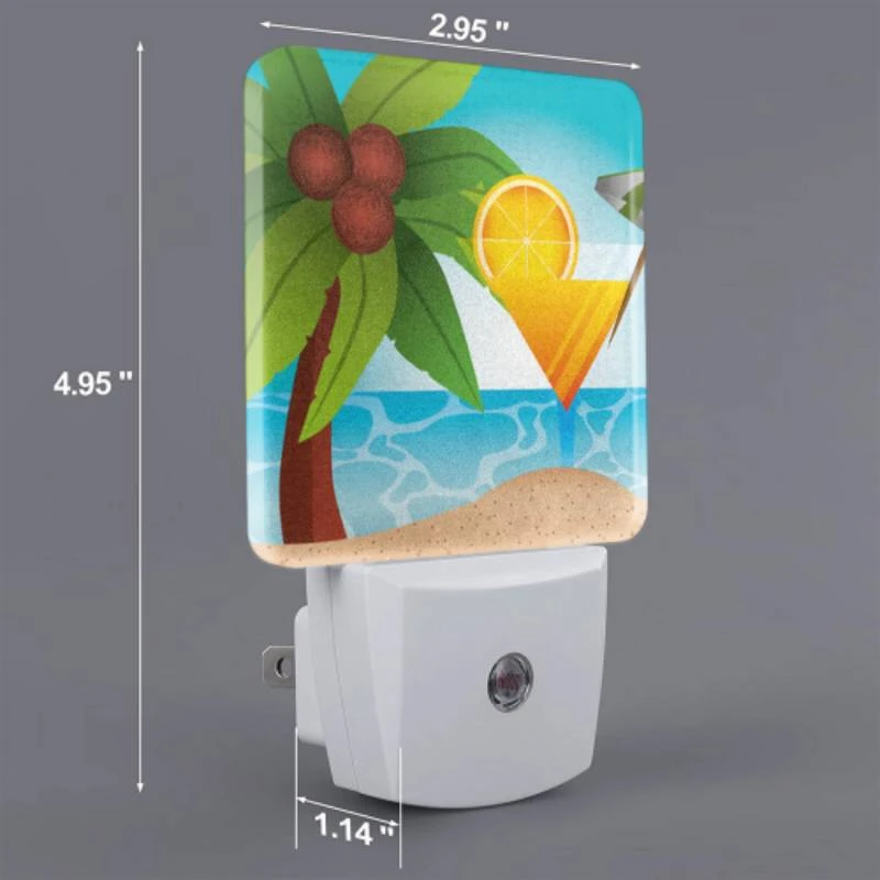Night Light, A Cocktail Is Served On A Beach With Palm Trees And A Lemon In The Background.