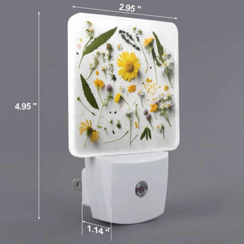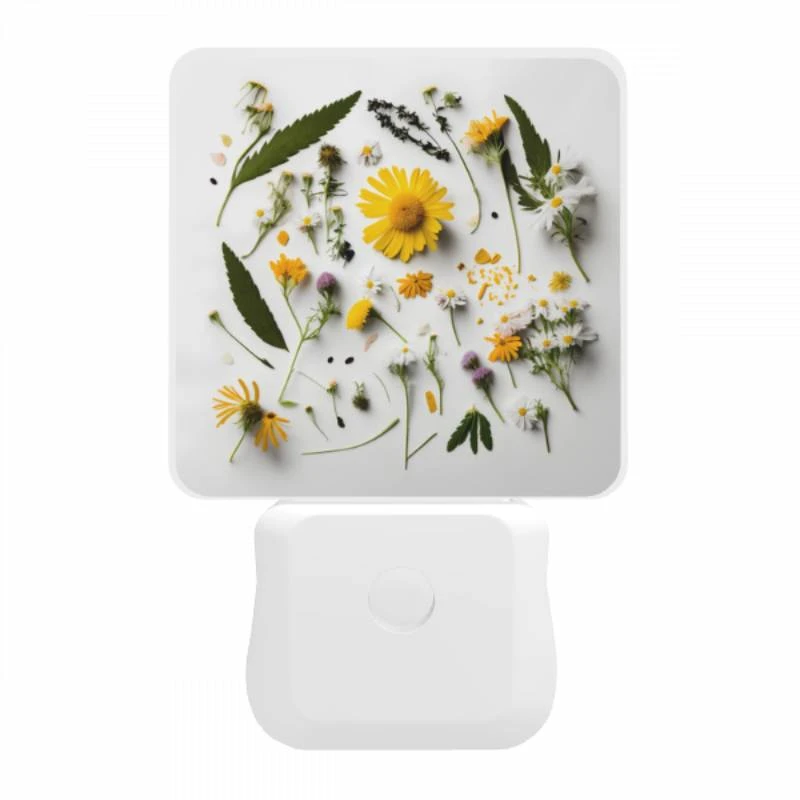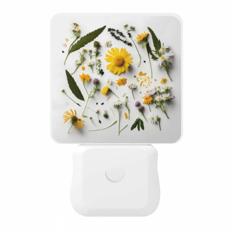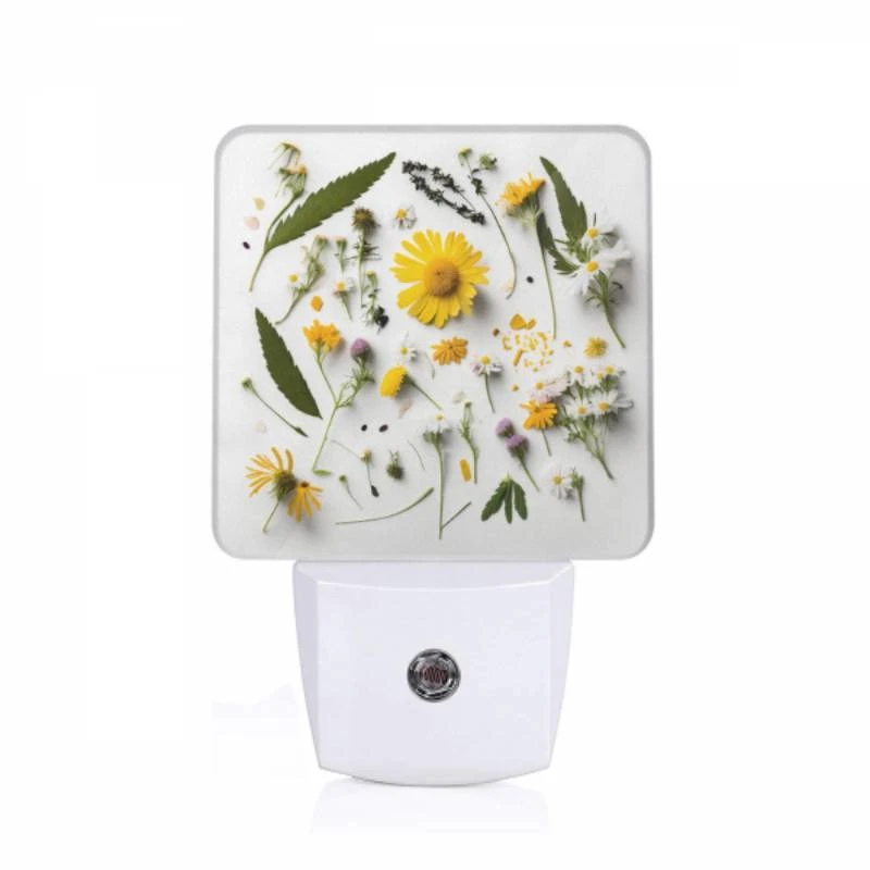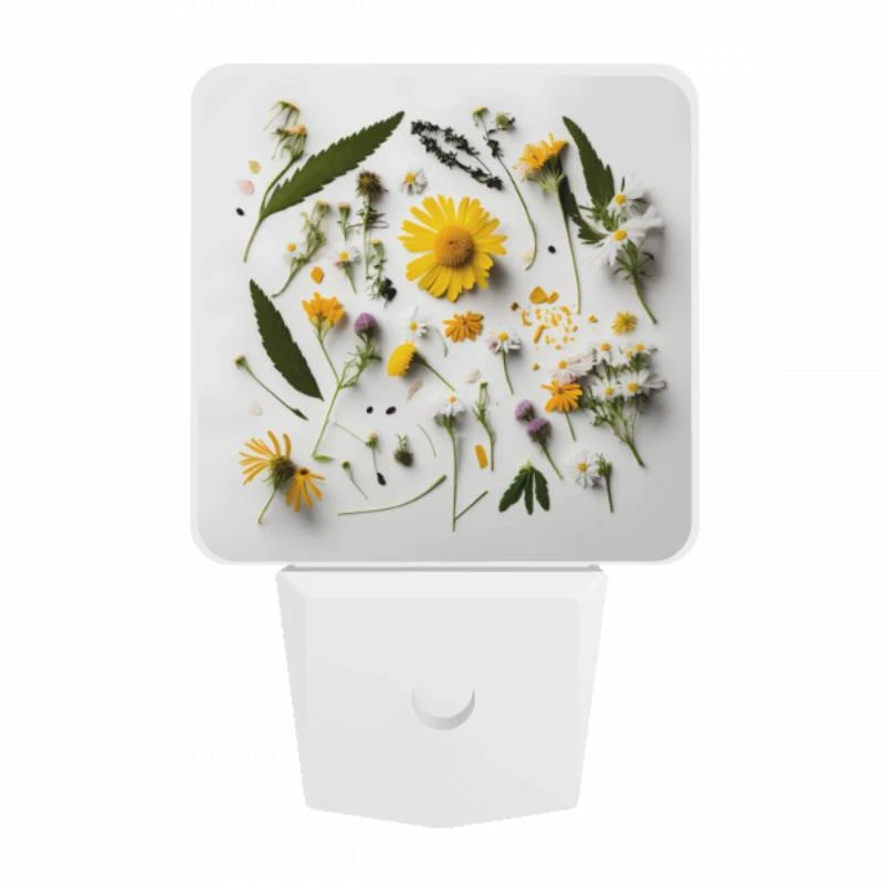 Night Light, A Collection Of Flowers And Leaves On A White Background.