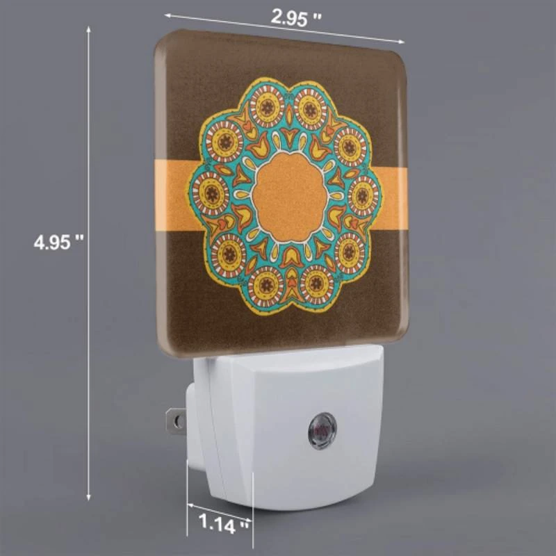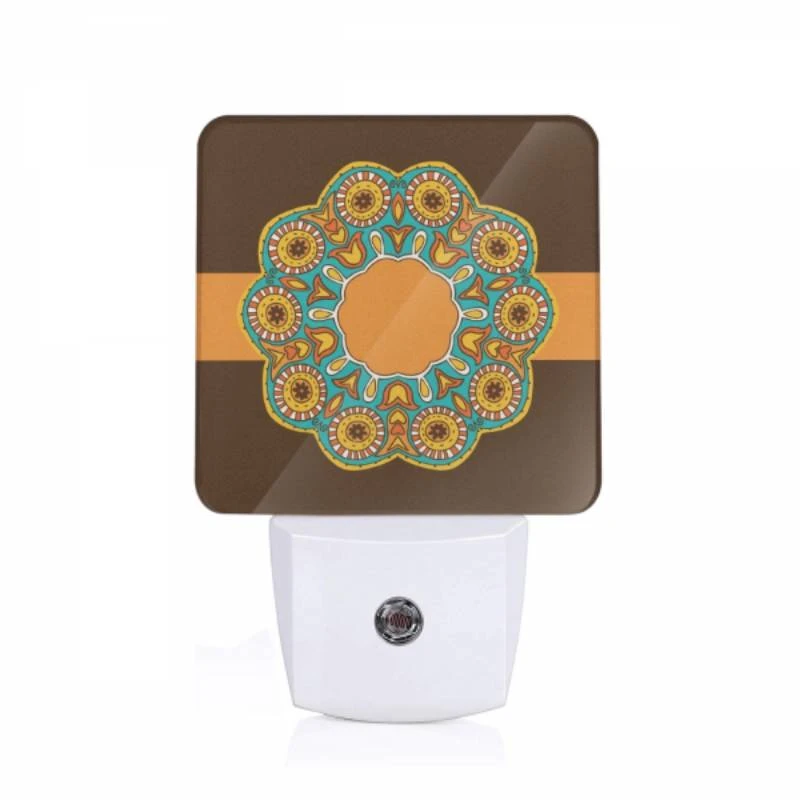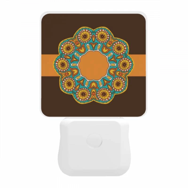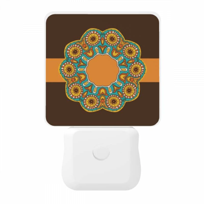 Night Light, A Colorful Circle With A Yellow Center And Blue And Orange Designs.
