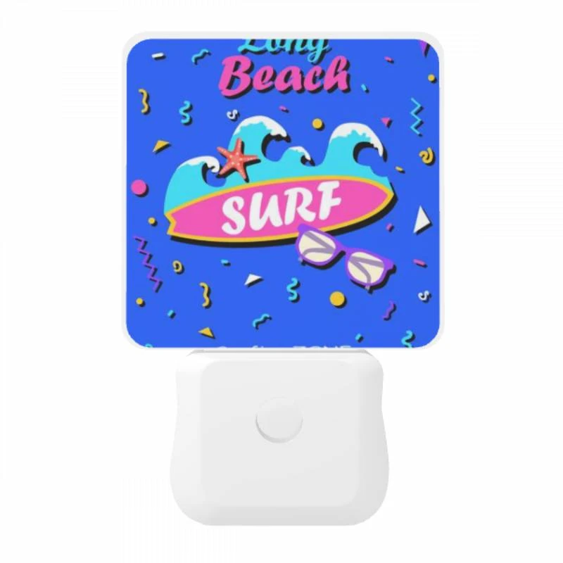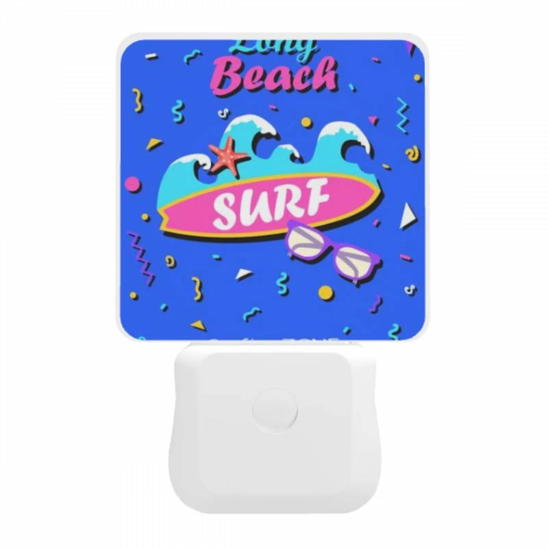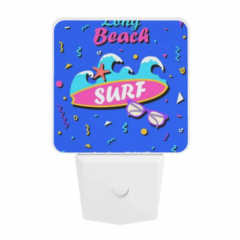 Night Light, A Colorful Surfing Zone Sign With A Pink And Blue Background.