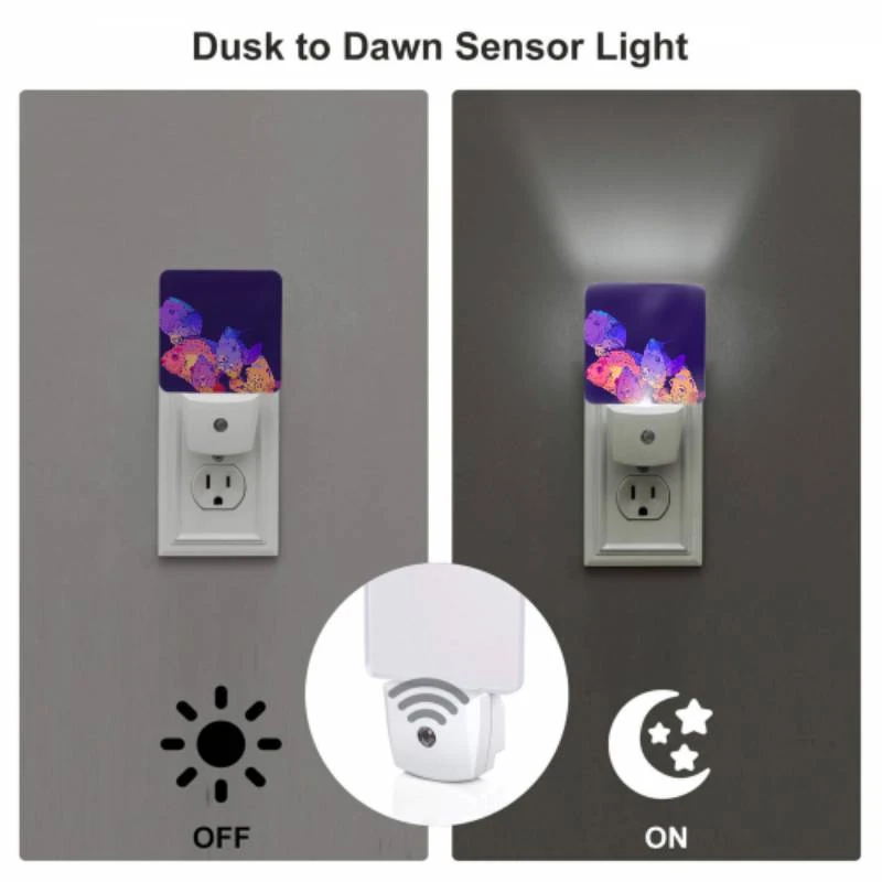 This LED sensor night light is lit by brightness. The photoconductive resistor inside the night light detects external light. When the external environment becomes dark, the photoconductive resistor controls the opening circuit, and then the night light starts to light up. When the external environment is bright to the critical point of the photoconductive resistor, the circuit is automatically cut off, and then the night light goes out to save power.