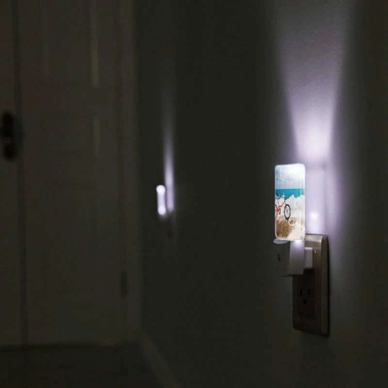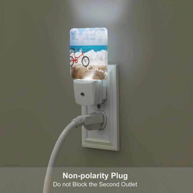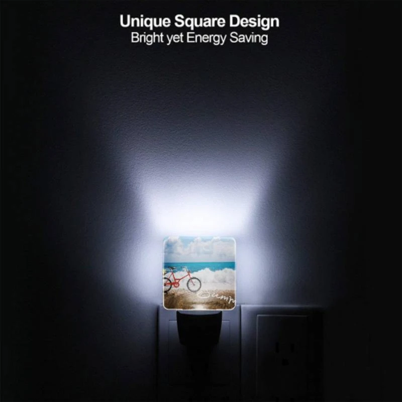 Night Light, A Red Bicycle Is Parked On The Beach.