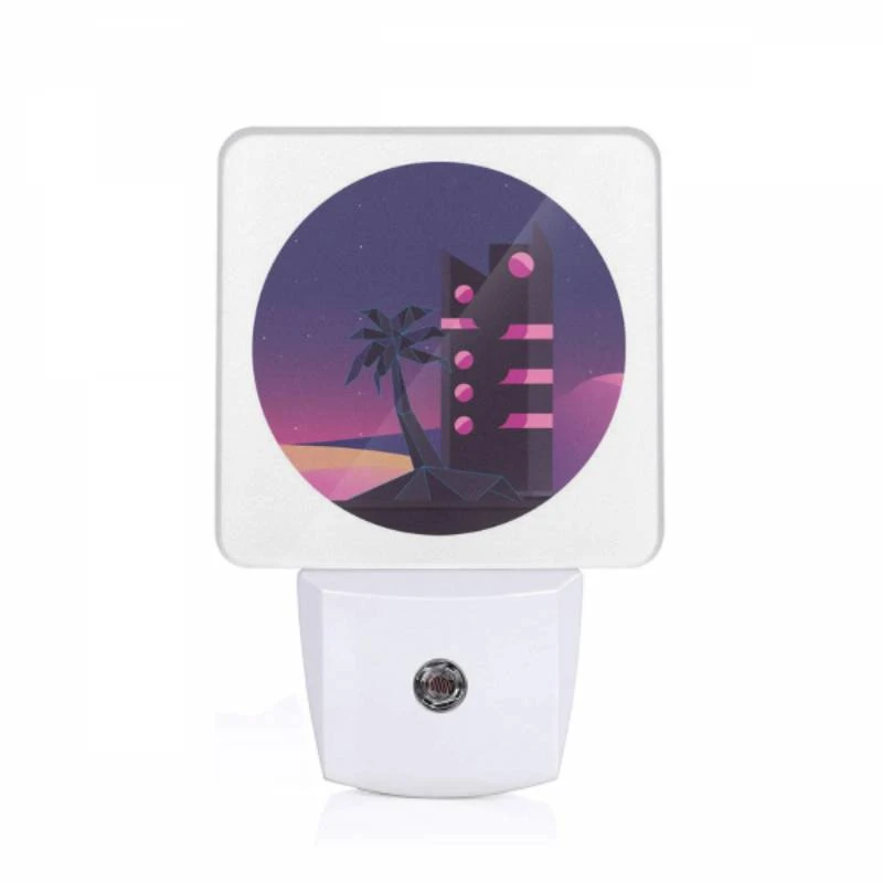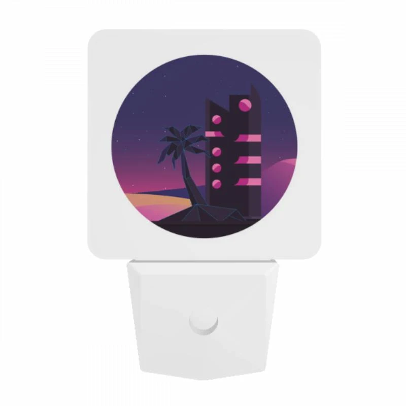 Night Light, A Tall Building With A Pink And Black Color Scheme Is Lit Up At Night.