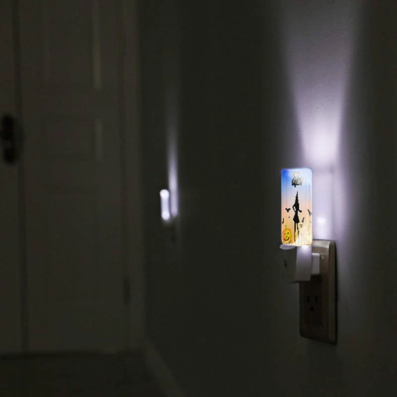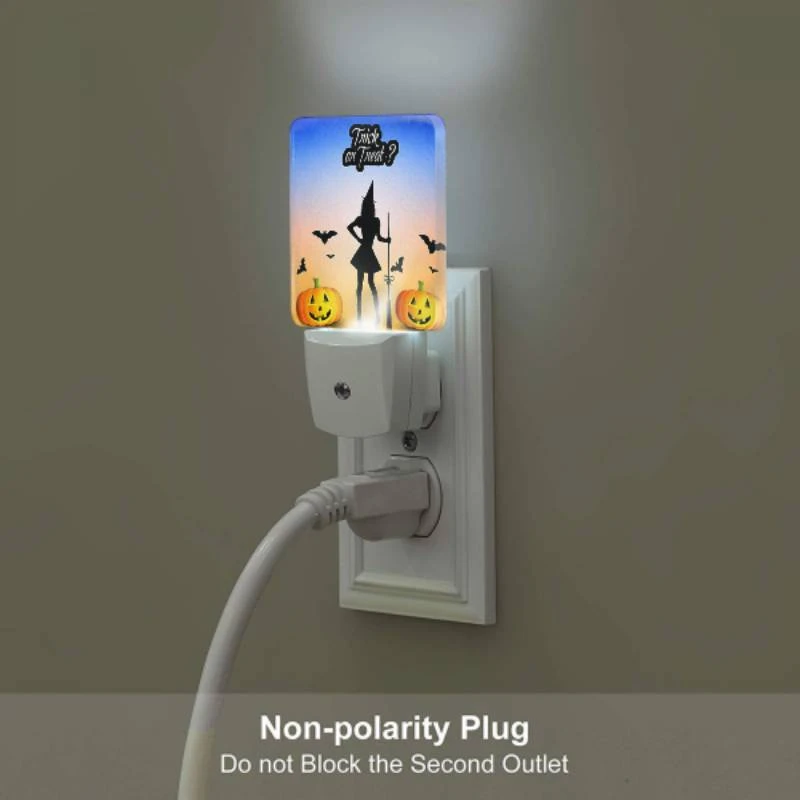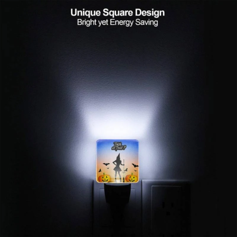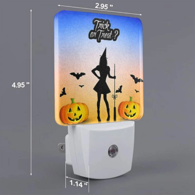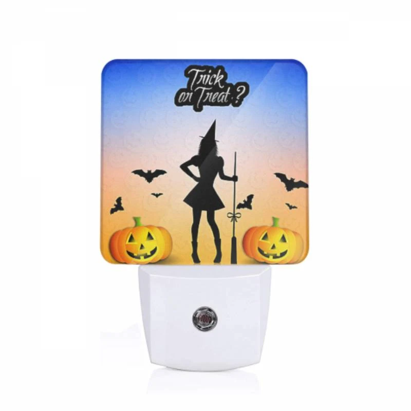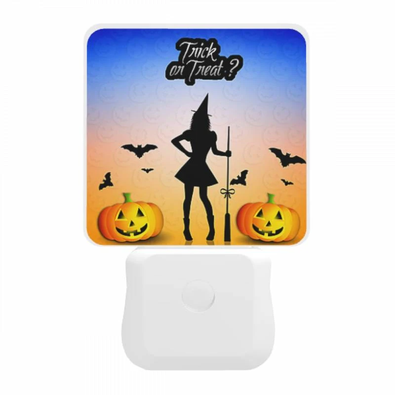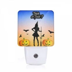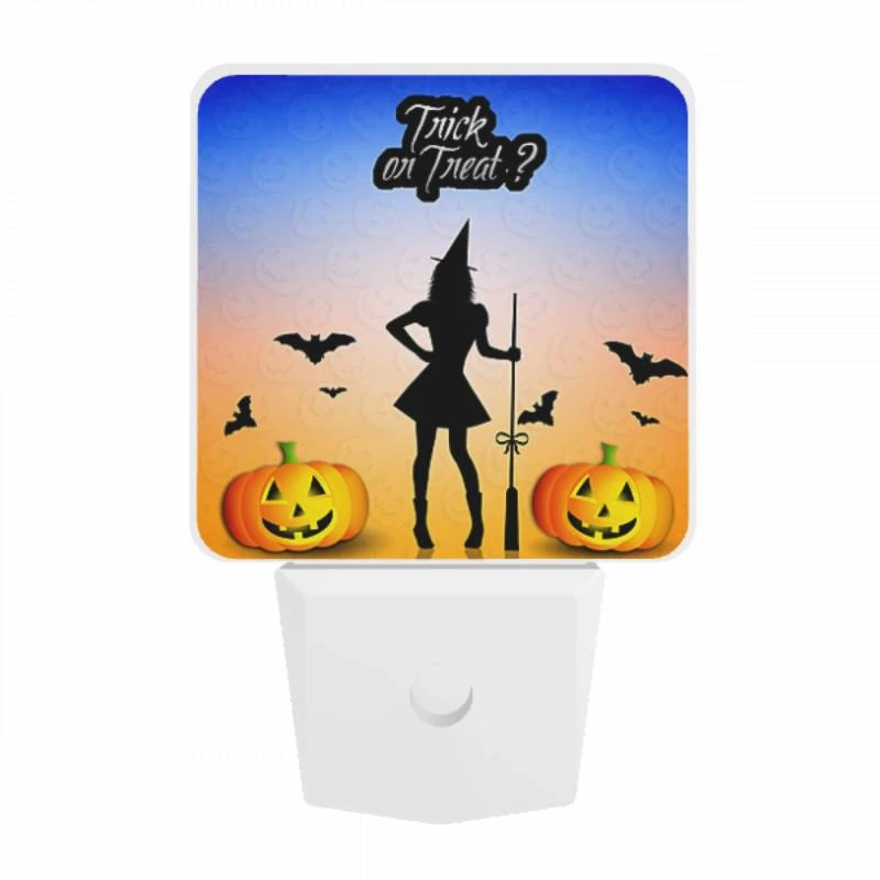 Night Light, A Witch On A Broomstick With Pumpkins And Bats In The Background.