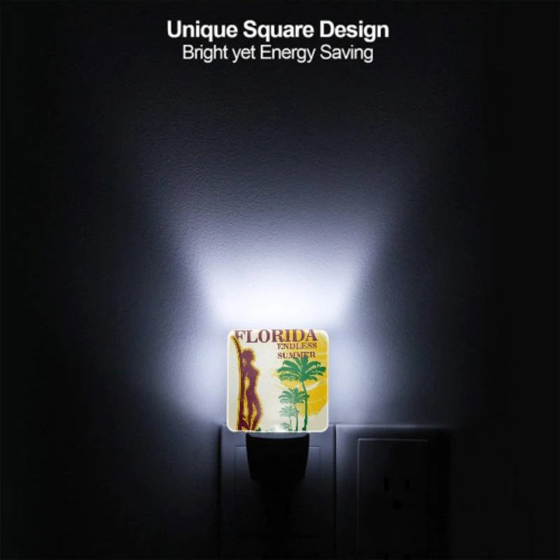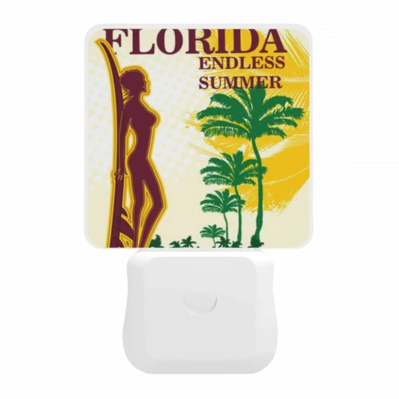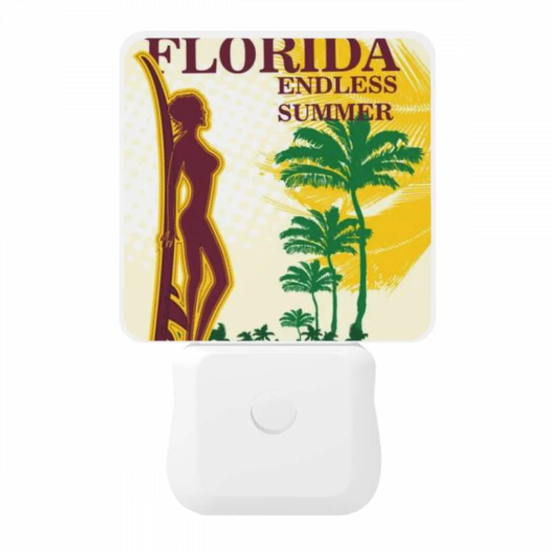 Night Light, A Colorful Poster Of Palm Trees And The Words “Miami Florida Beach.”.