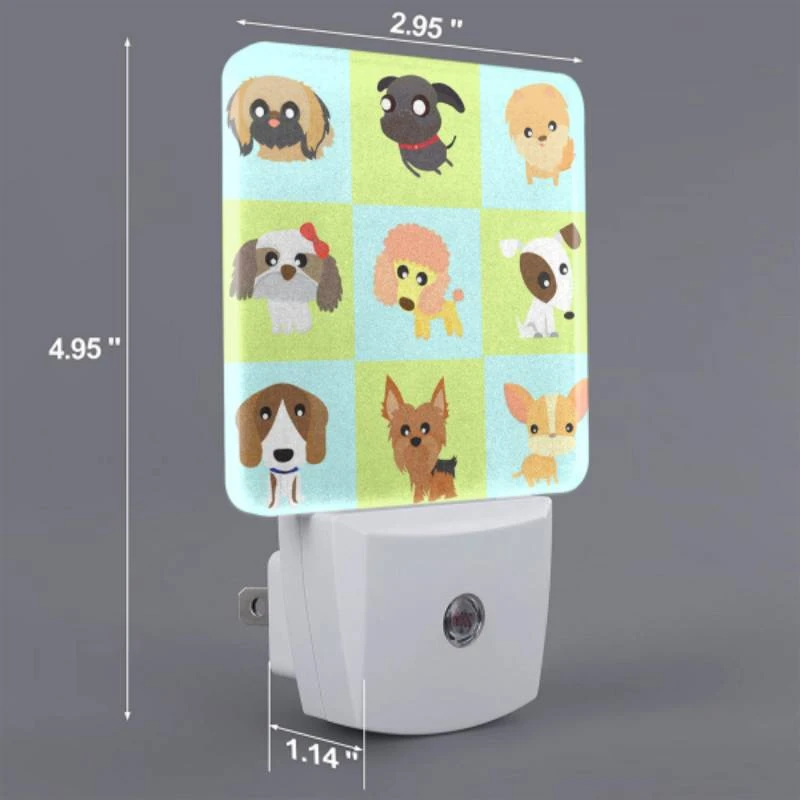 Night Light Set Of 2, A Collection Of Cartoon Dog Images.