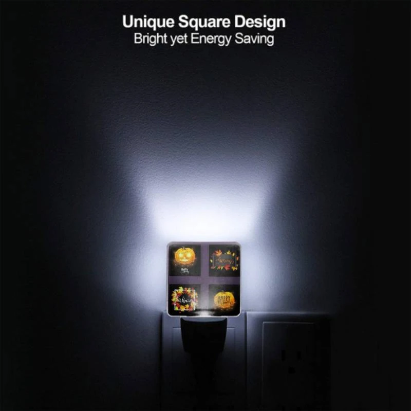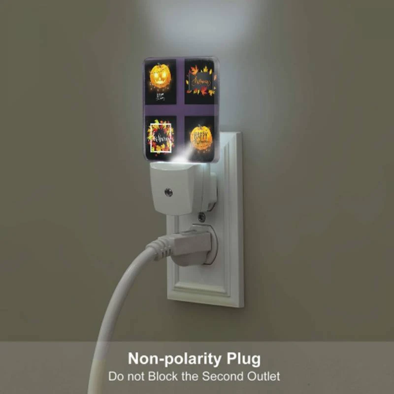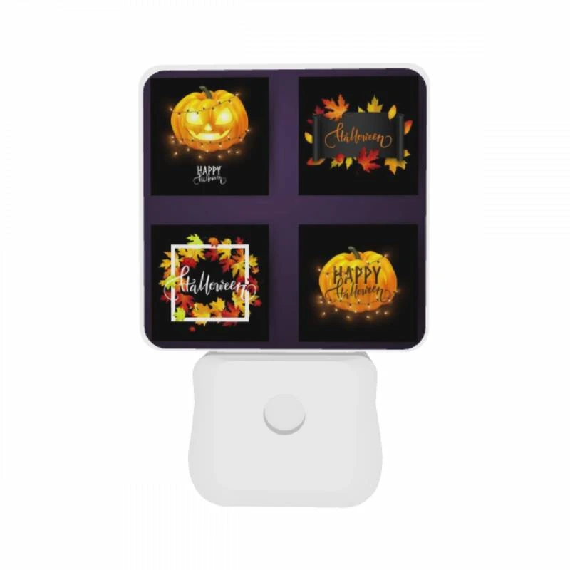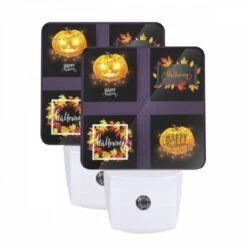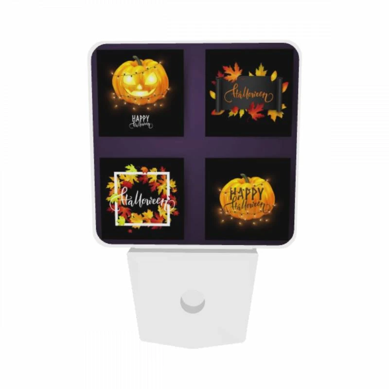Night Light Set Of 2, A Collection Of Halloween Designs With A Pumpkin And A Leaf.