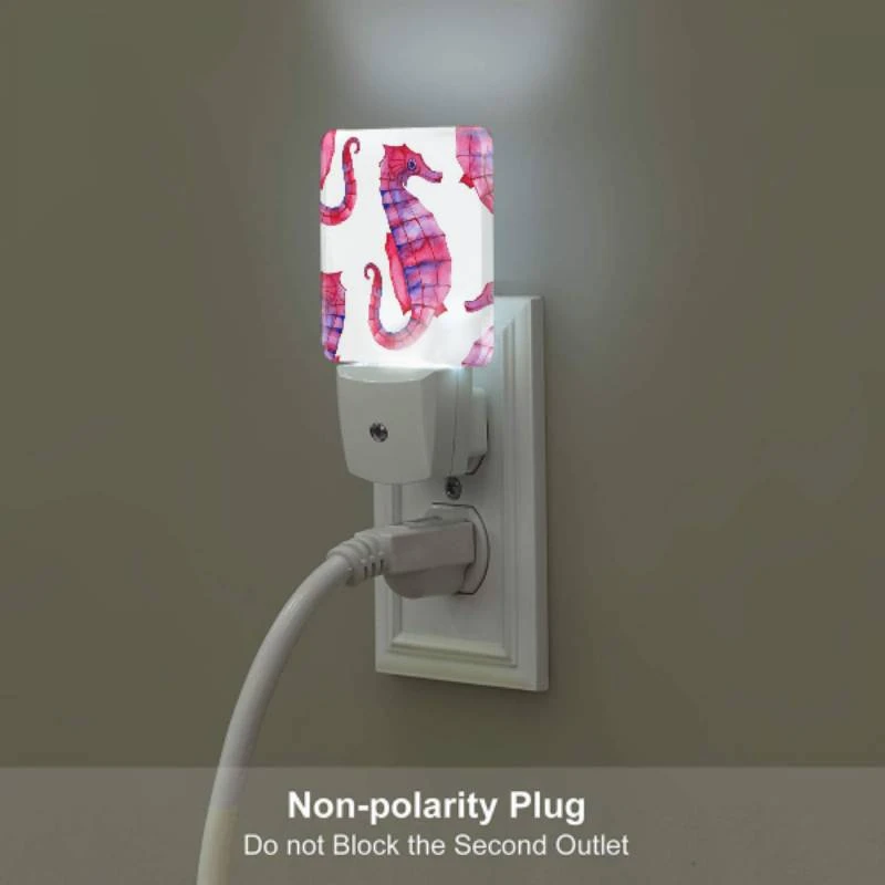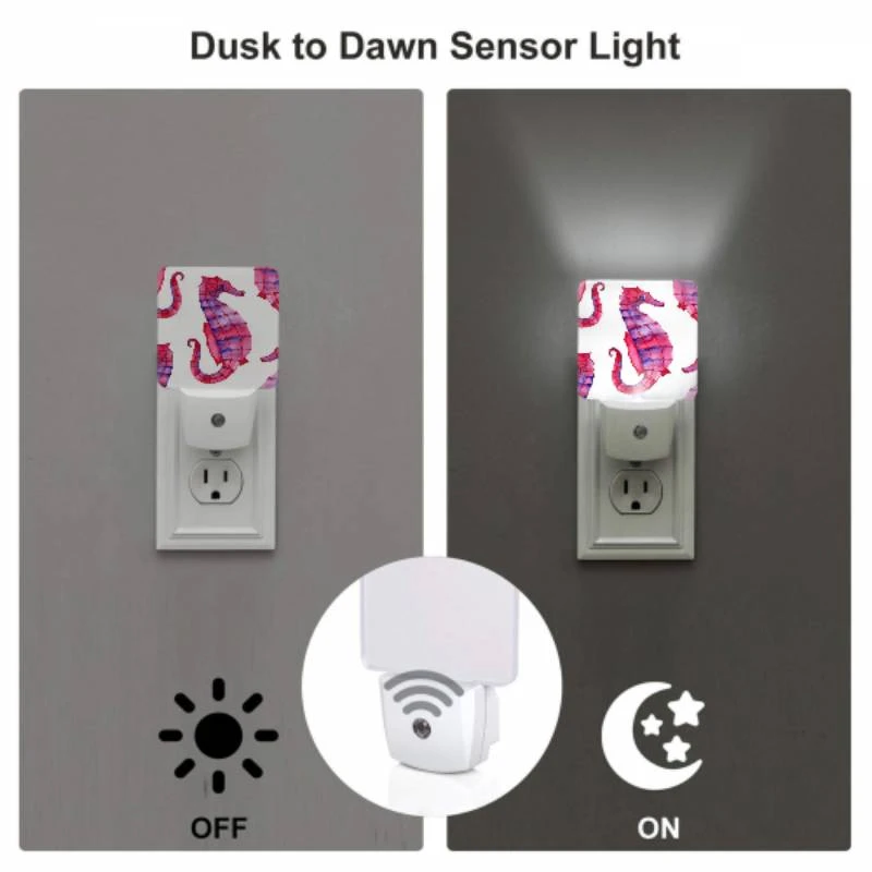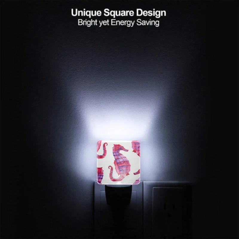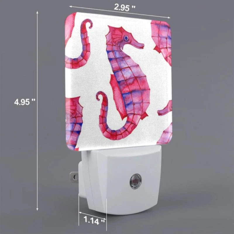Night Light Set Of 2, A Collection Of Red And Blue Sea Horse Paintings.