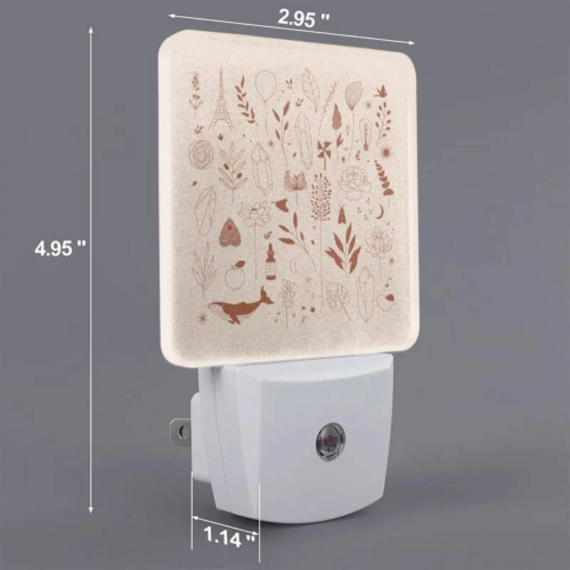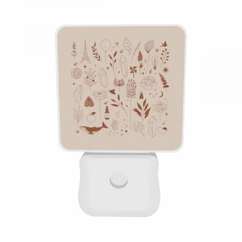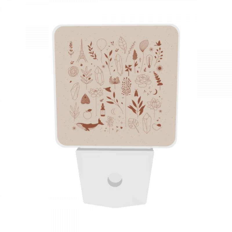 Night Light Set Of 2, A Collection Of Various Plants And Flowers.