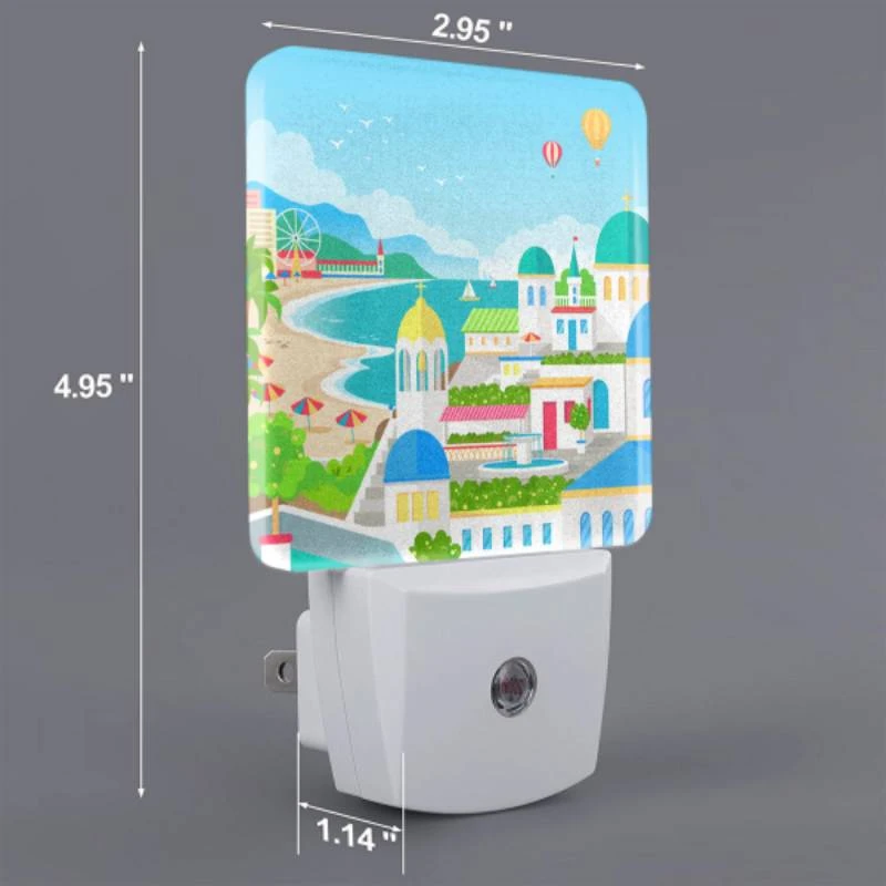 Night Light Set Of 2, A Colorful Cartoon Of A City With A Beach -Cute Night Light Shop 888f30951459c399292eb9024698db04080fda52