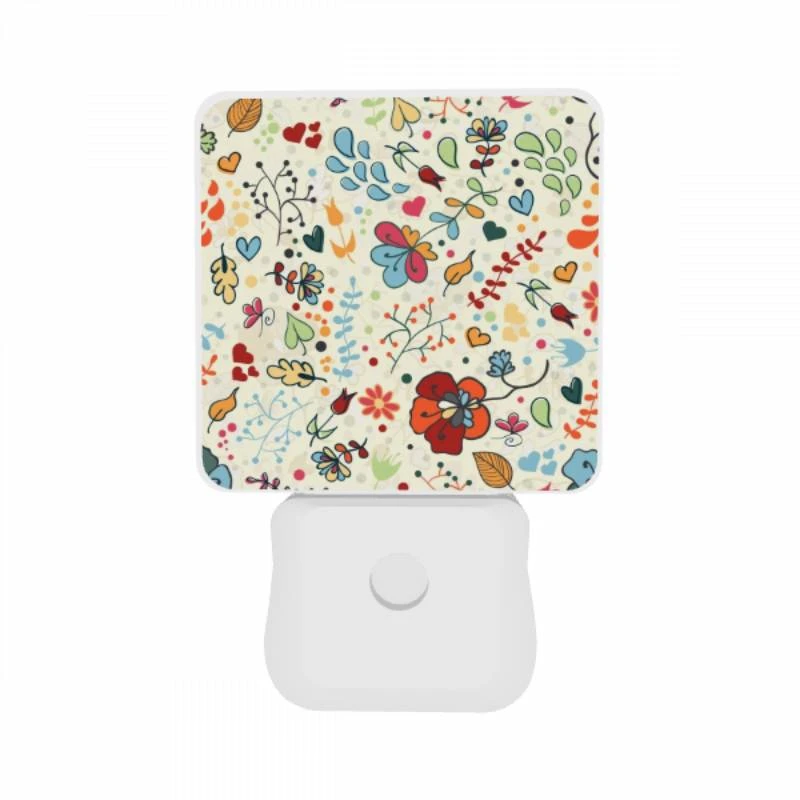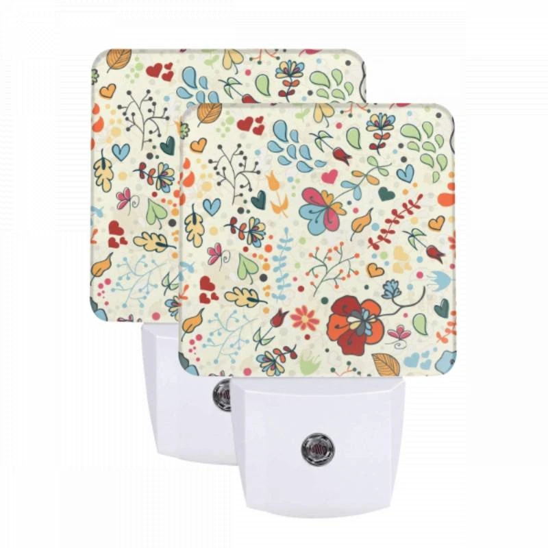 Night Light Set Of 2, A Colorful Floral Pattern With Hearts And Leaves.