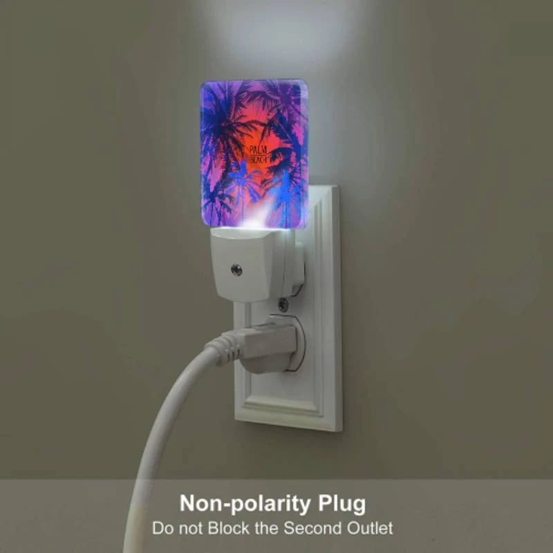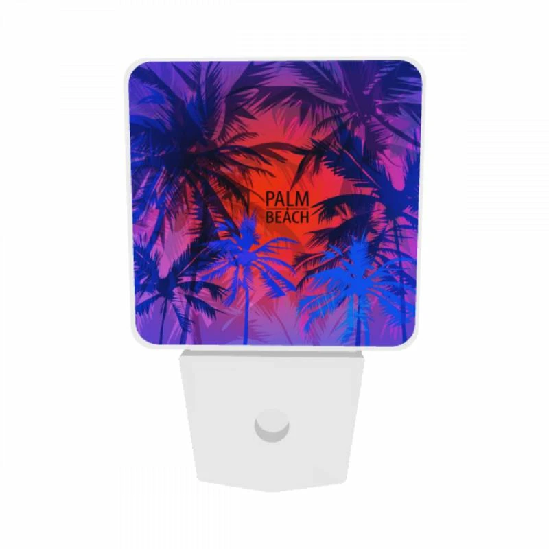 Night Light Set Of 2, A Colorful Image Of A Beach With A Sign That Says “Palm Beach.”