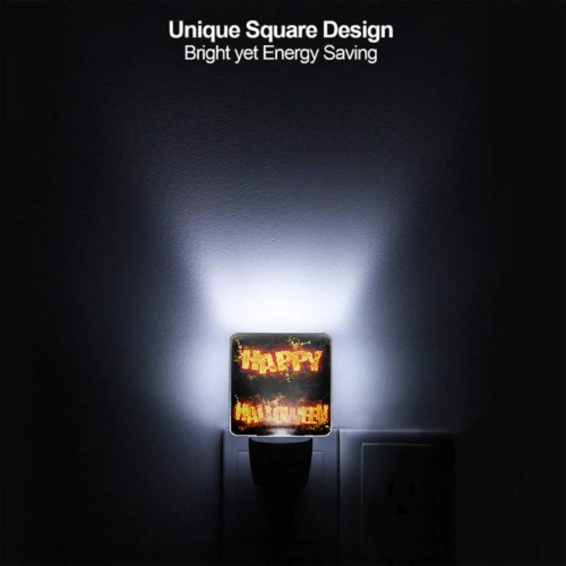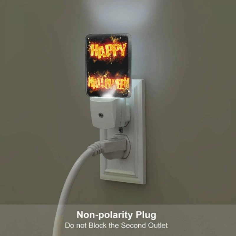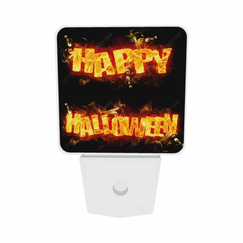 Night Light Set Of 2, A Firey Sign That Says “Happy Halloween”.