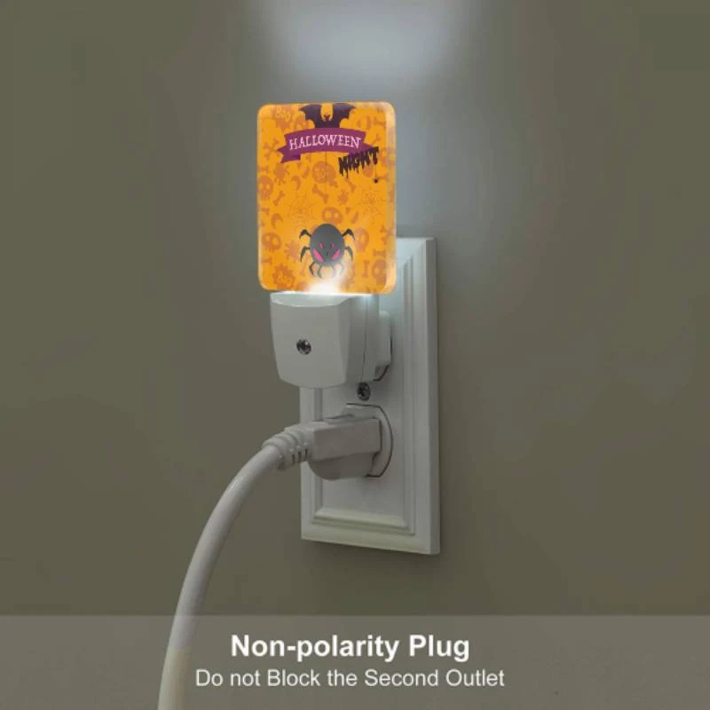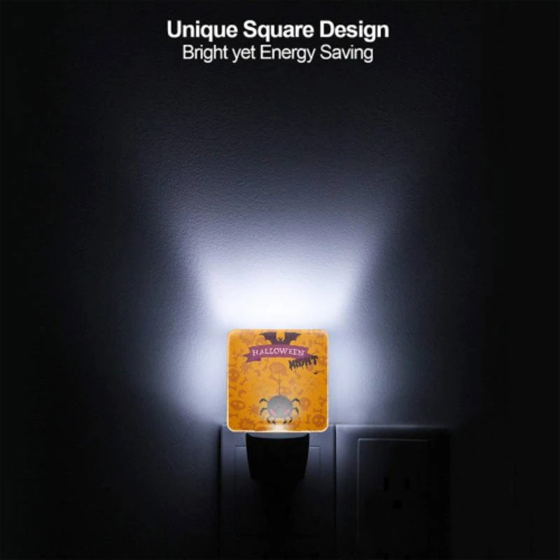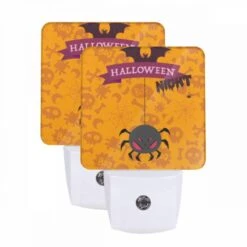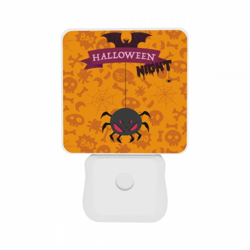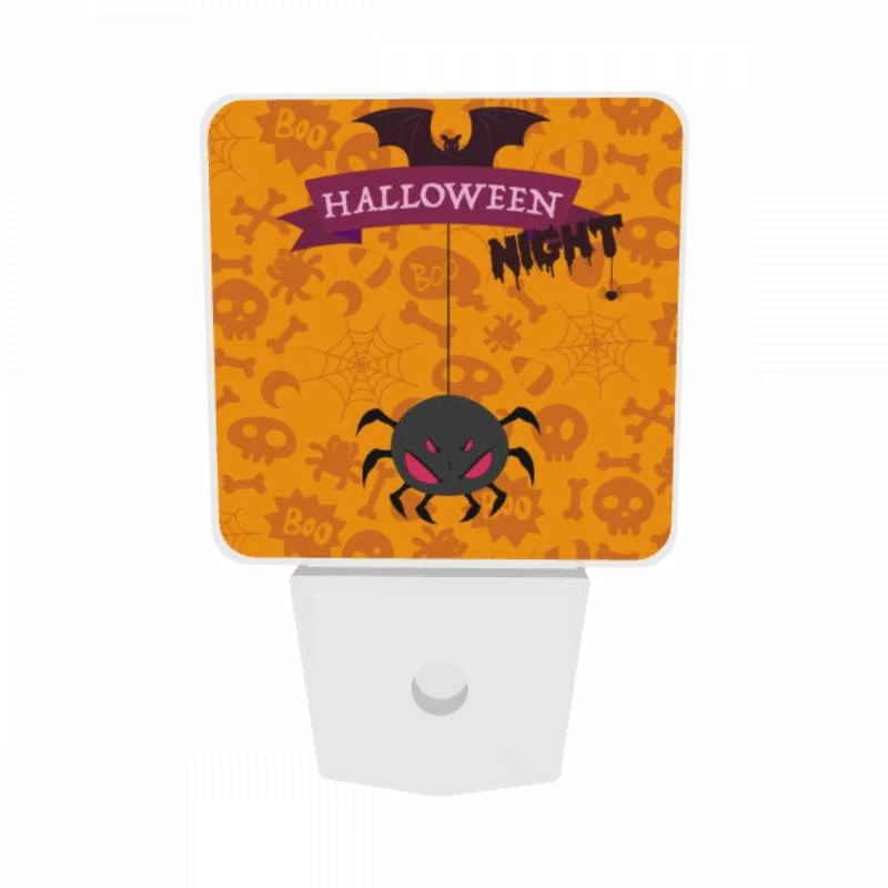 Night Light Set Of 2, A Halloween Night Sign With A Spider And Bats.