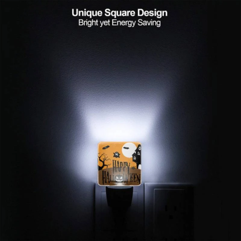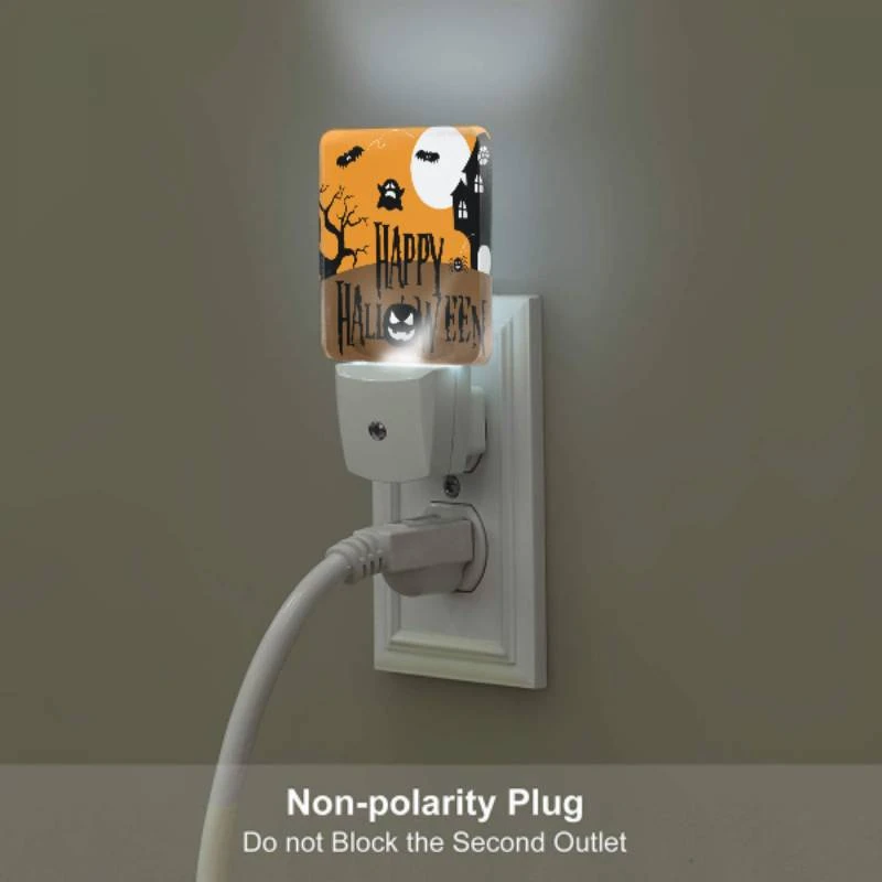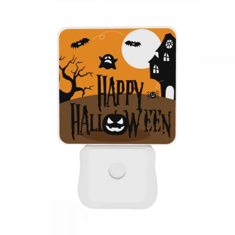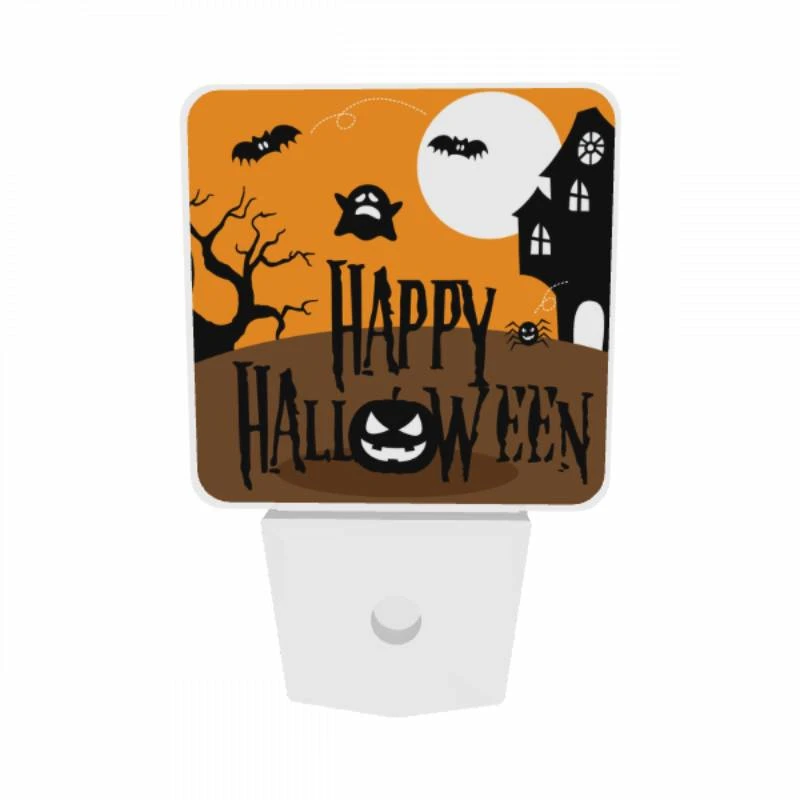 Night Light Set Of 2, A Halloween Poster With A House And Ghosts.
