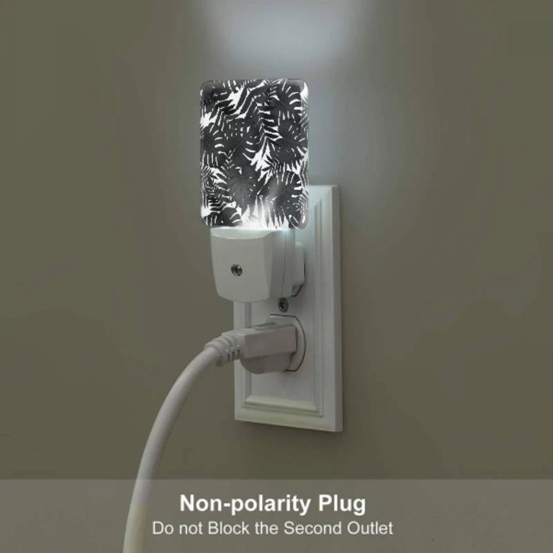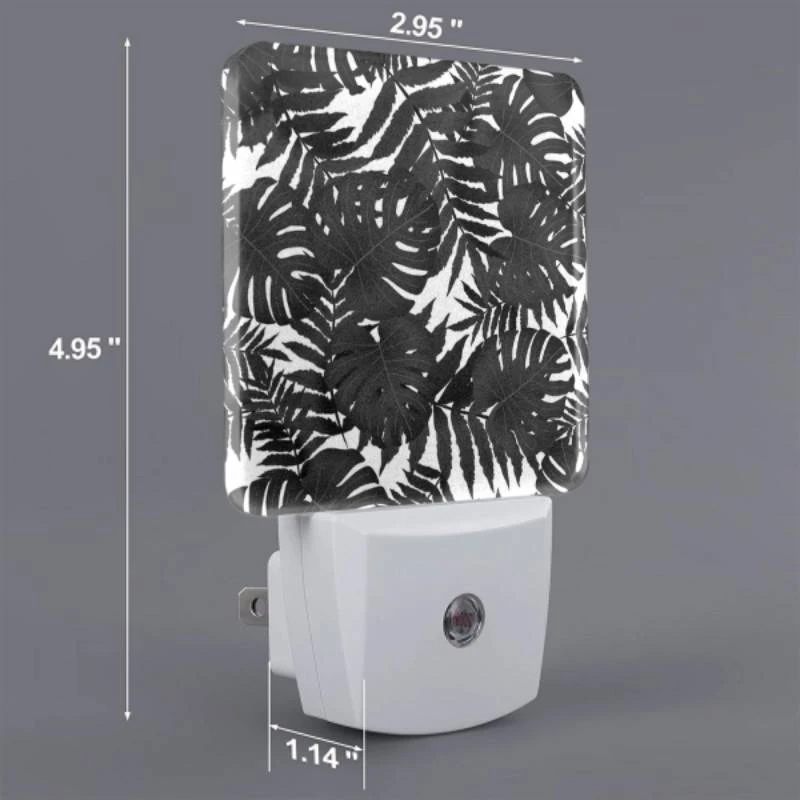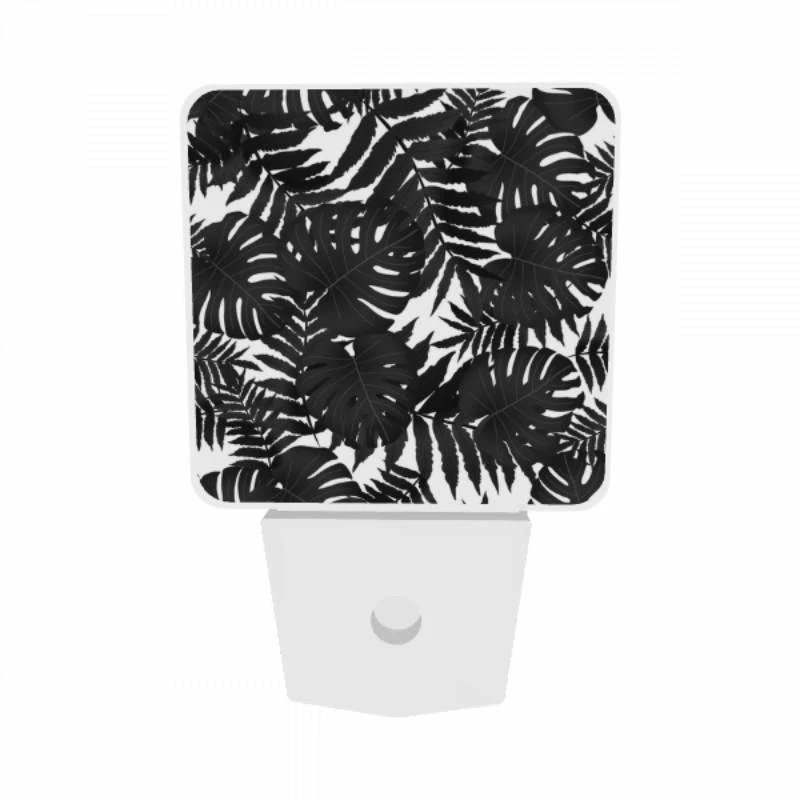 Night Light Set Of 2, A Pattern Of Leaves On A Black And White Background. -Cute Night Light Shop 5e6c06ac147d8f5be12718f9721d10889d56694f