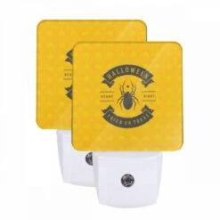 Night Light Set Of 2, A Spider Is The Centerpiece Of A Halloween Night Poster.