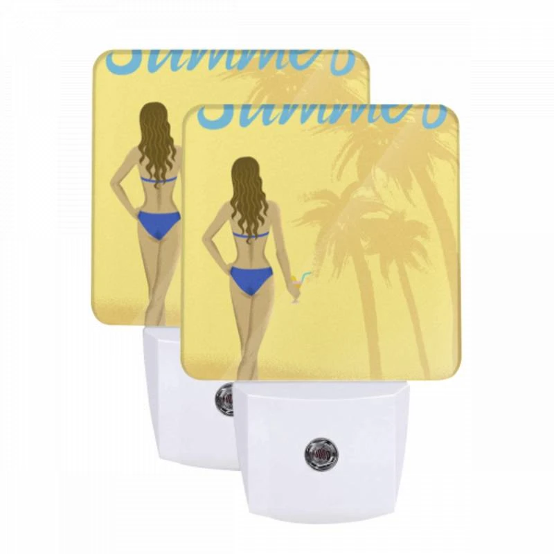 Night Light Set Of 2, A Woman In A Bikini Holding A Drink.