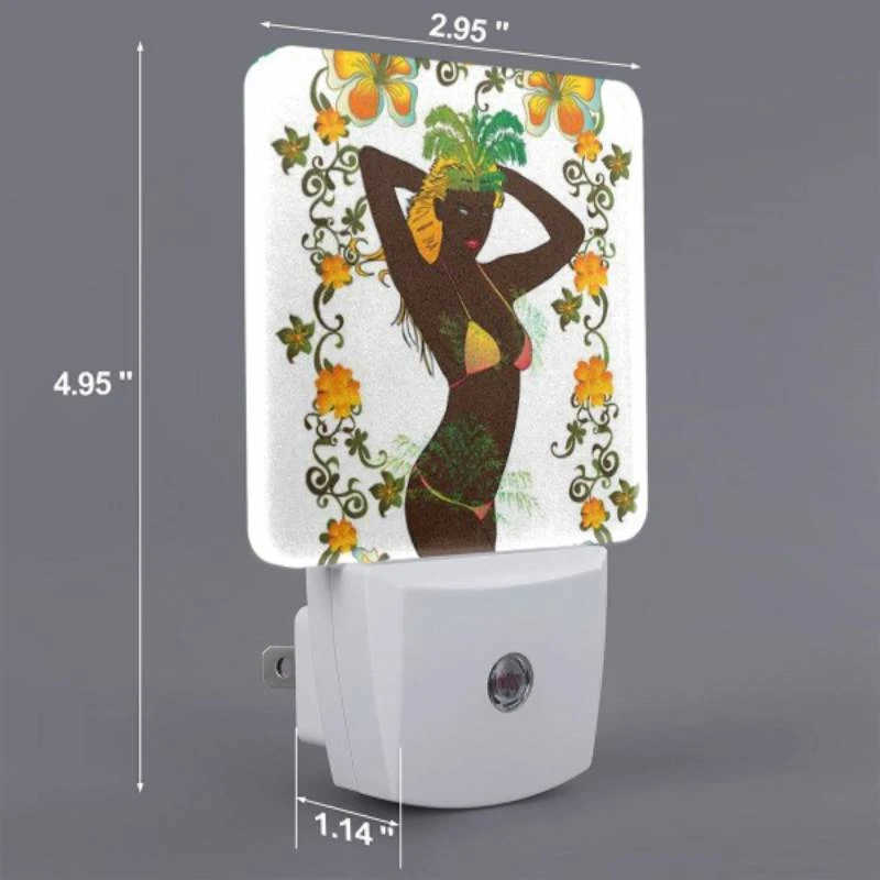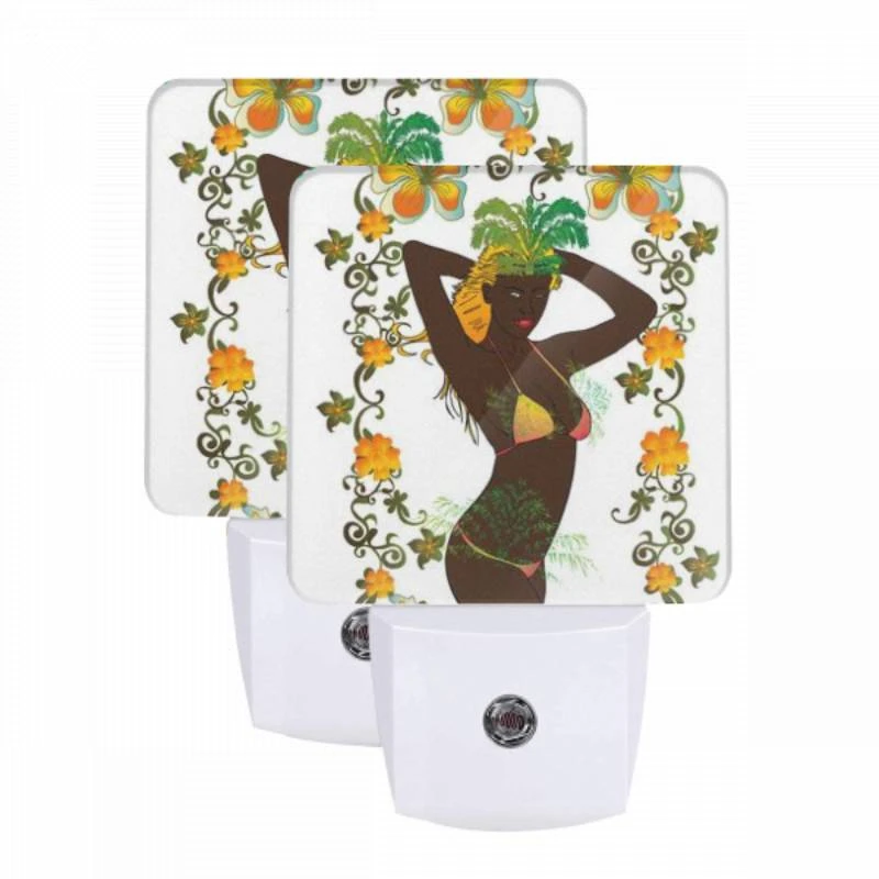 Night Light Set Of 2, A Woman Wearing A Grass Skirt And A Flower In Her Hair. -Cute Night Light Shop f9242cbb92d02466dcd2bac41aca752e258b2f10