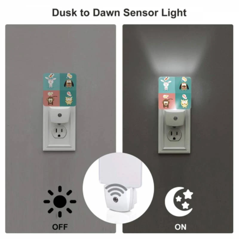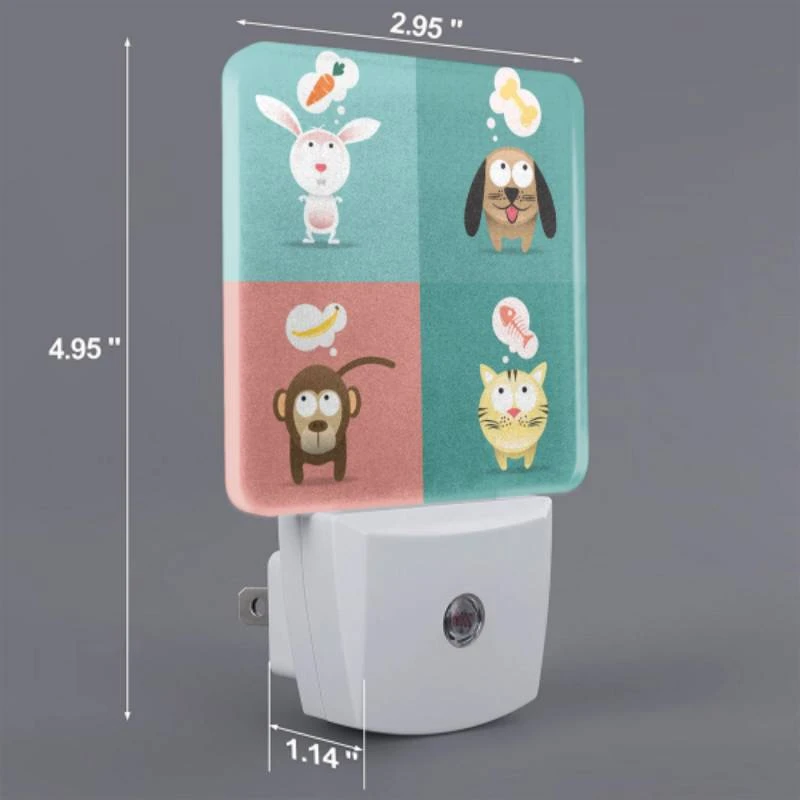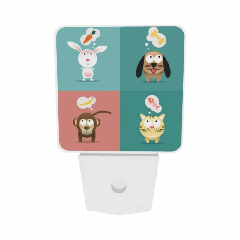Night Light Set Of 2, Four Different Animals Are Shown With Their Thoughts Written On Them.