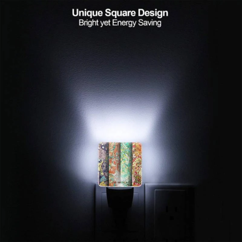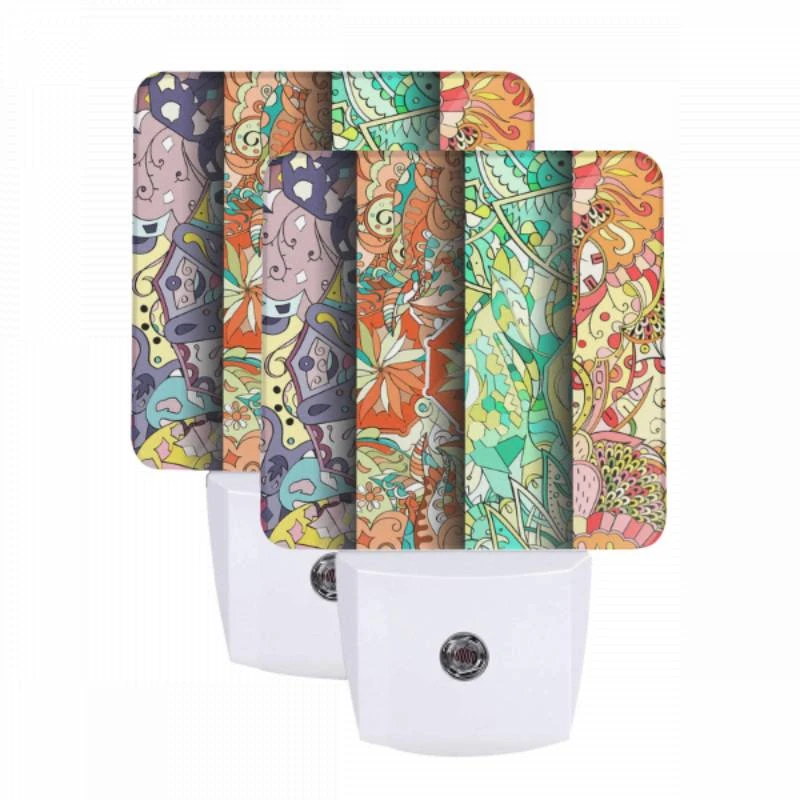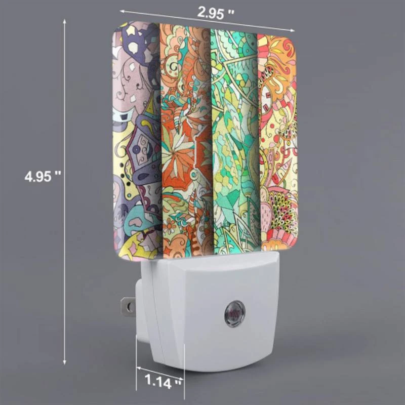 Night Light Set Of 2, Four Different Colored Designs Of Flowers Are Displayed On A Wall.