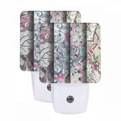 Night Light Set Of 2, Three Different Colored Designs Of Swirls And Patterns.
