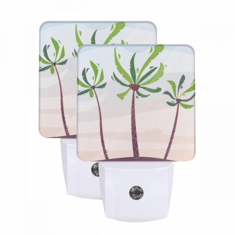 Night Light Set Of 2, Three Palm Trees Are Standing In The Sand.