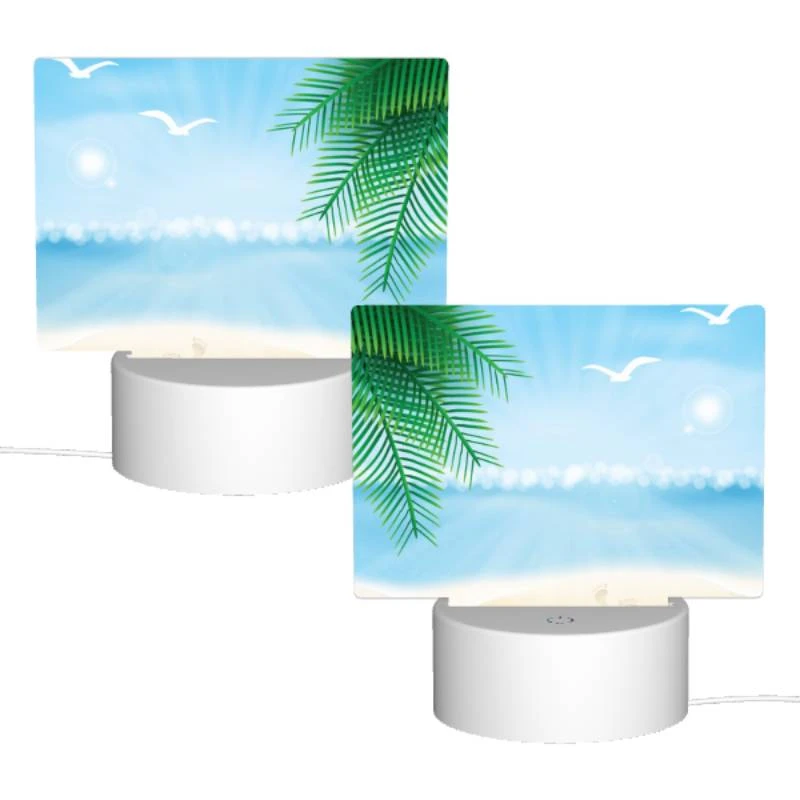 Rectangular Acrylic Night Light, A Beach Scene With A Palm Tree