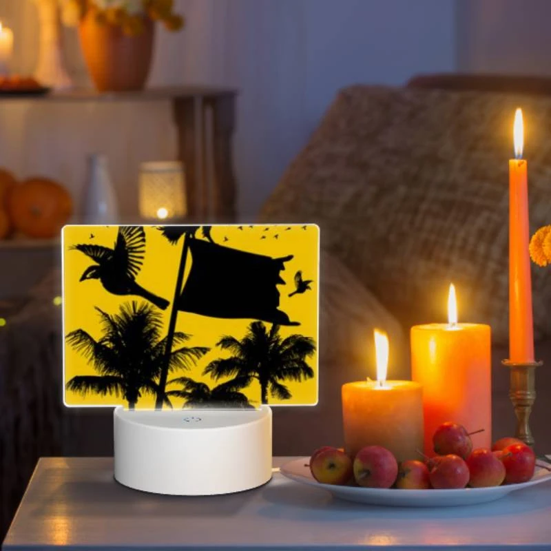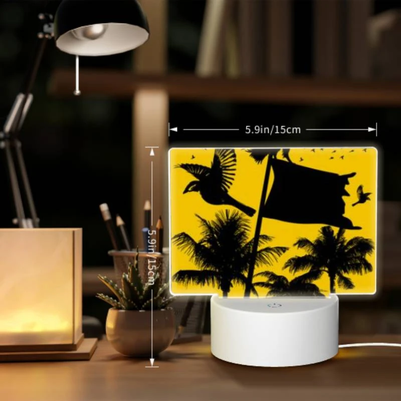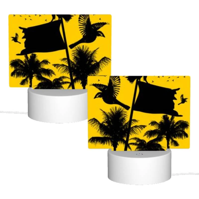 Rectangular Acrylic Night Light, A Black And White Image Of A Bird Flying In Front Of A Yellow Flag.