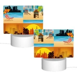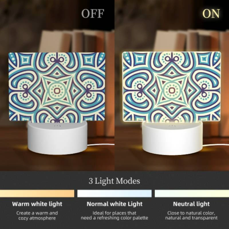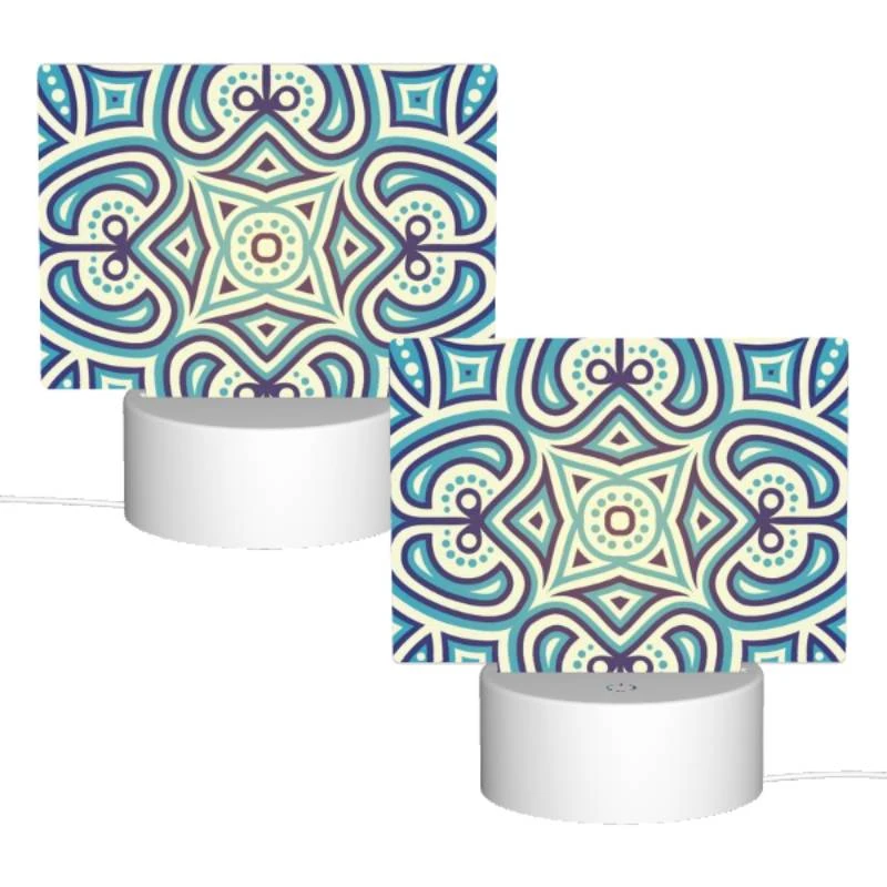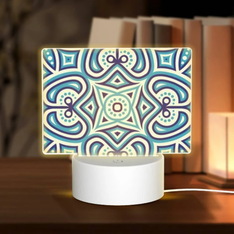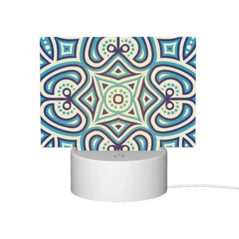 Rectangular Acrylic Night Light, A Blue And White Patterned Design.