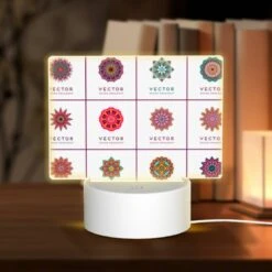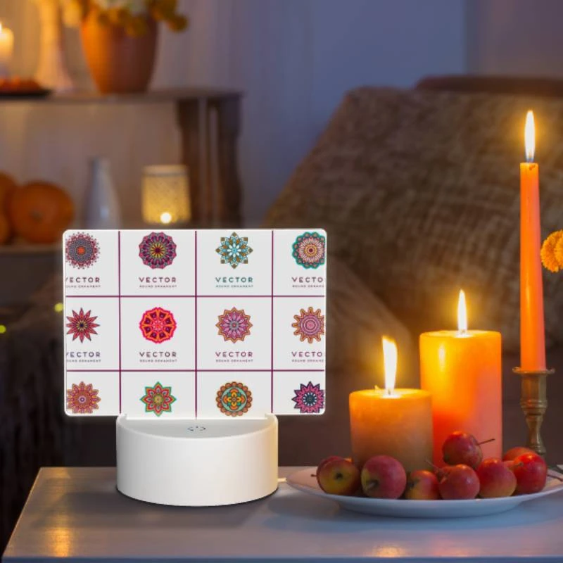Rectangular Acrylic Night Light, A Collection Of Colorful Geometric Shapes.