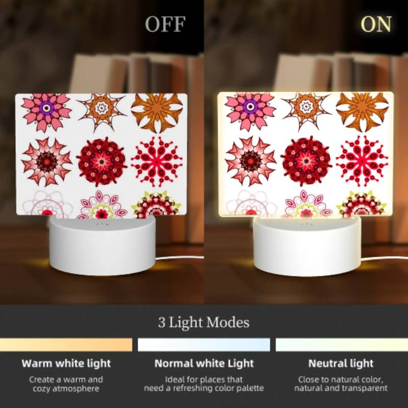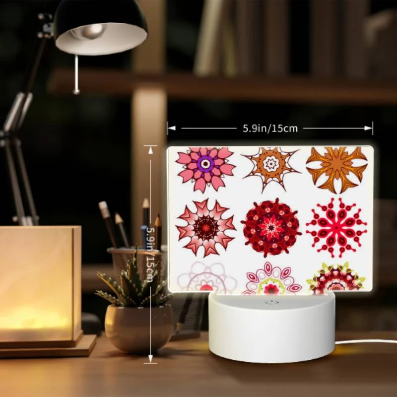 Rectangular Acrylic Night Light, A Collection Of Six Different Colored Flower Designs.