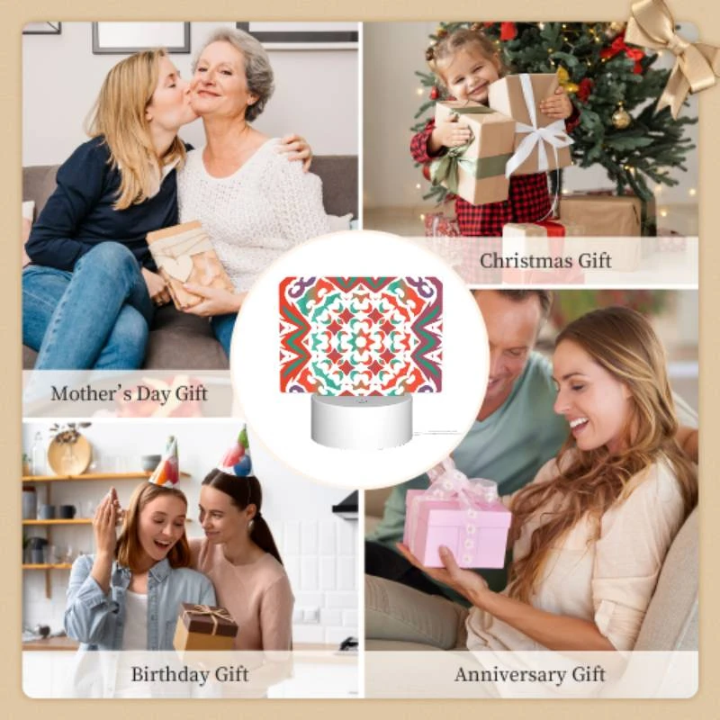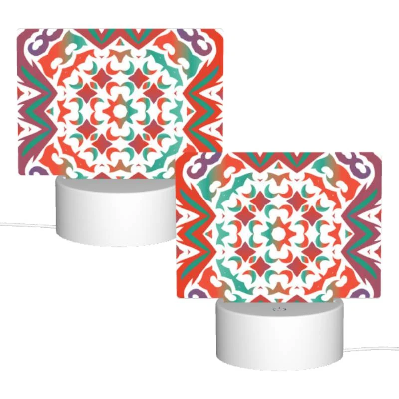 Rectangular Acrylic Night Light, A Colorful And Intricate Design On A Red Background.