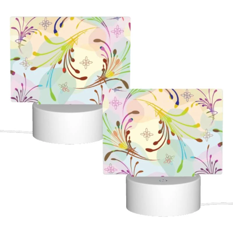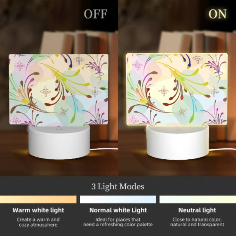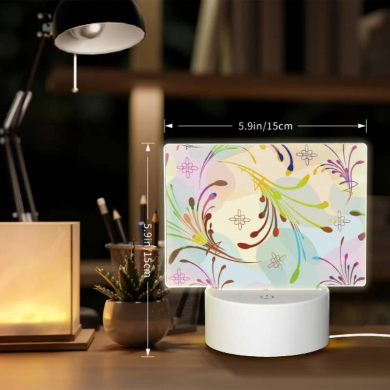 Rectangular Acrylic Night Light, A Colorful Floral Pattern With A Variety Of Colors And Shapes.